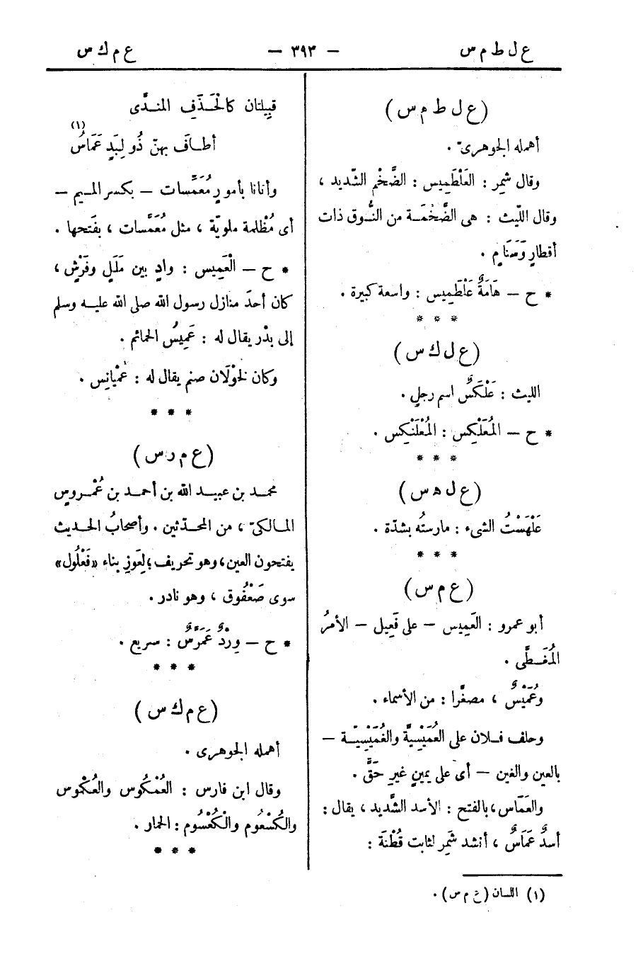 * ح - هَامَةٌ عَلْطَمِيس: واسعة كبيرة.