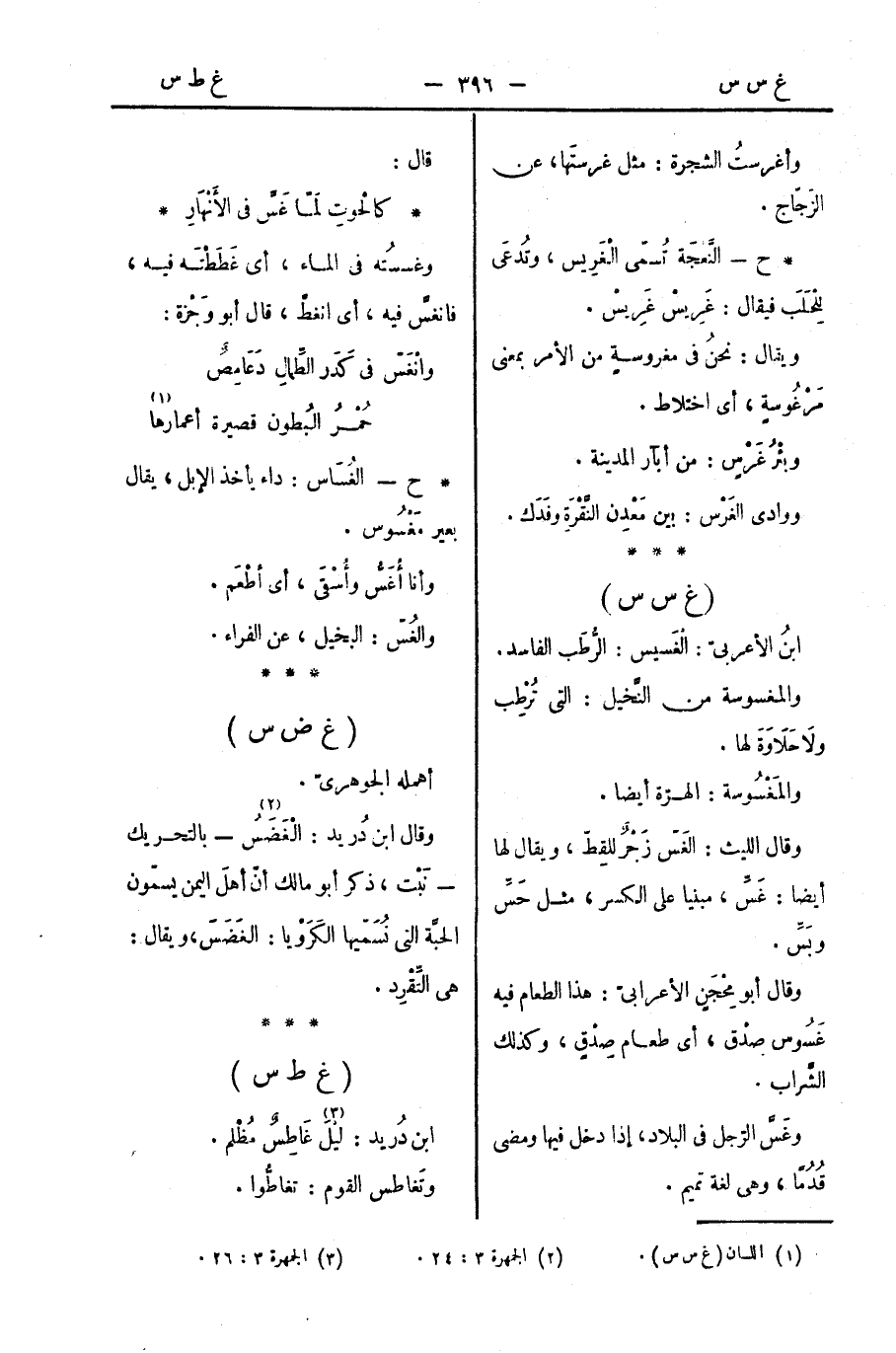 * ح - الغُسَاس: داء يأخذ الإبل، يقال بعير مَغْسُوس.