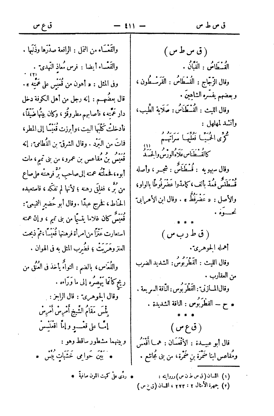 وقال الزّجّاج: القُسْطَاسُ: القَرَسْطُون، وبعضهم يفسّره الشاهِينَ.