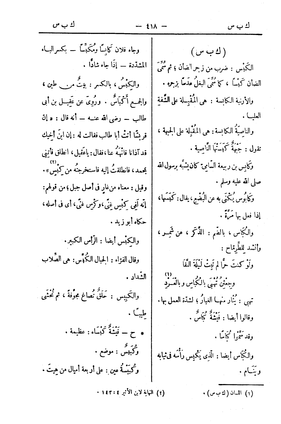 وجاء فلان كَابِسًا ومُكَبِّسًا - بكسر الباء المشدّدة - إذَا جاء شادًّا.