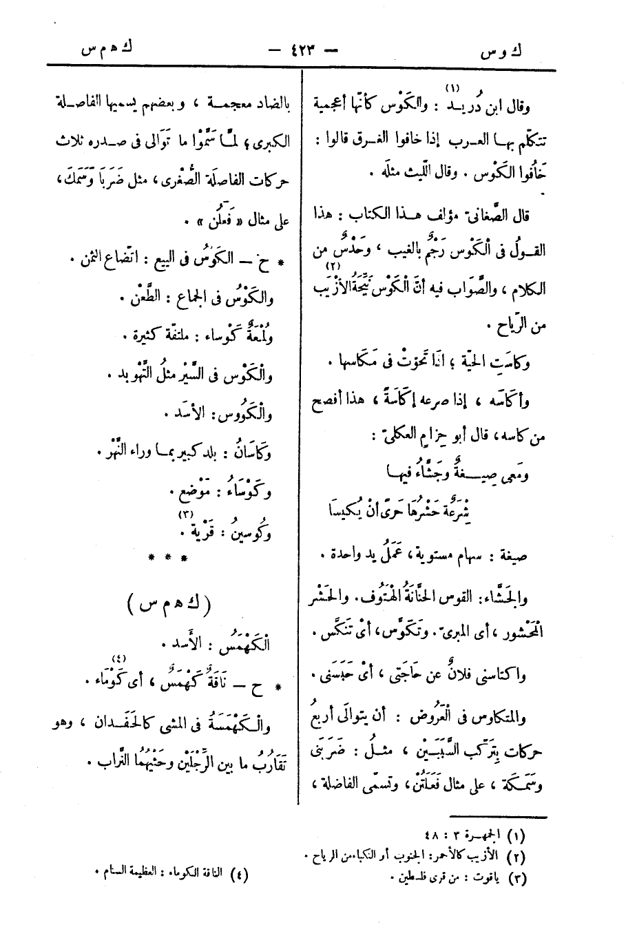 قال الصَّغانيّ مؤلف هذا الكتاب: هذا القولُ في الكَوْس رَجْمٌ بالغيب، وحَدْسٌ من الكلام، والصَّوَاب فيه أنَّ الكَوْس نَيِّحَةُ الأزْيَب من الرّياح.
