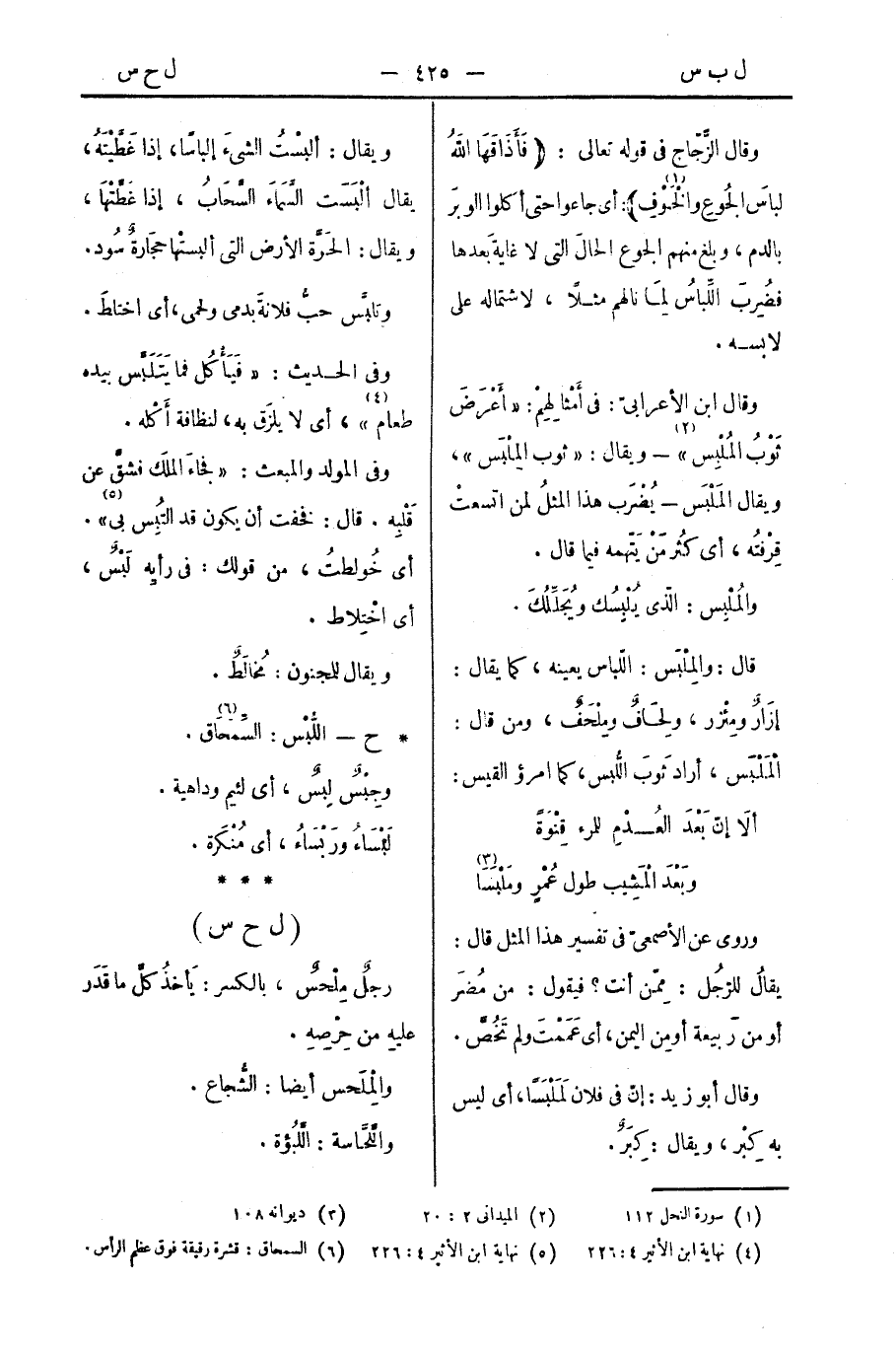 قال: والمِلْبَس: اللّباس بعينه، كما يقال: إزَارٌ ومِئْزر، ولِحَافٌ ومِلْحَفٌ، ومن قال: المَلْبَس، أراد ثَوبَ اللُّبس، كما [قال] امرؤ القيس: