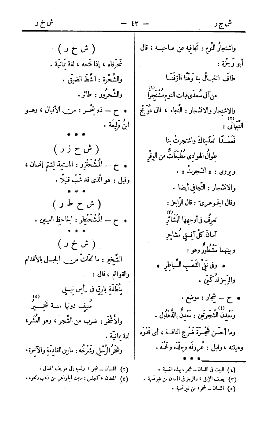 والأَشْخَر: ضرب من الشَّجر، وهو العُشَر، لغة يمانيَة.