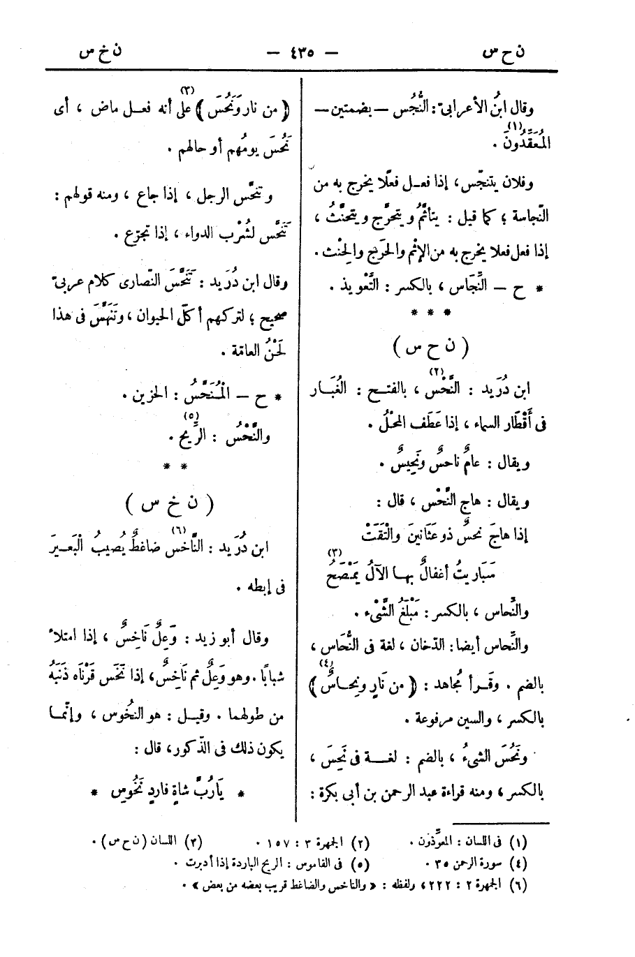 وقال ابن دُرَيد: تَنَحَّسَ النّصارى كلام عربيّ صحيح؛ لتركهم أكلَ الحيوان، وتَنَهَّسَ في هذا لَحْنُ العامة.