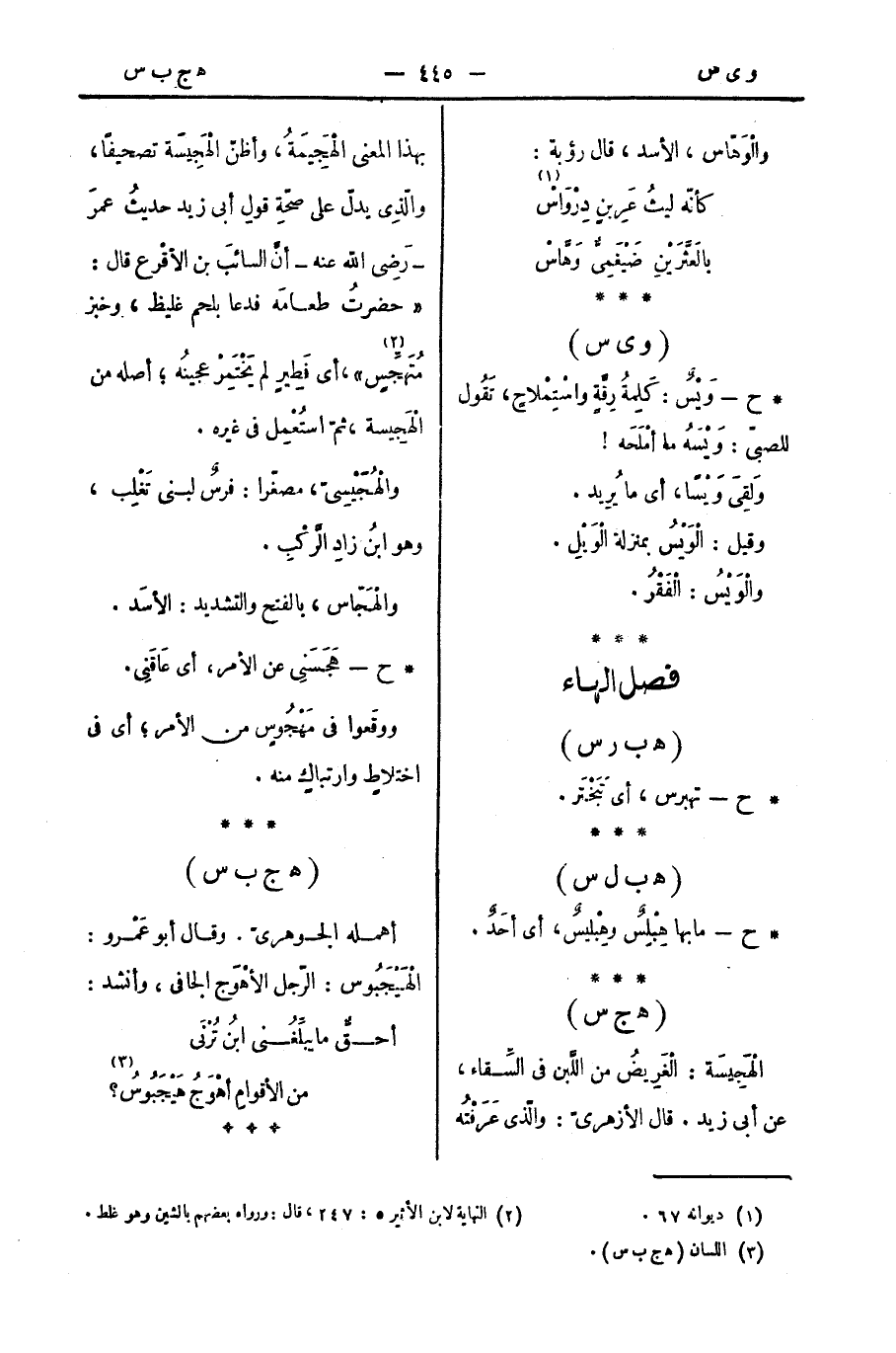 * ح - وَيْسٌ: كَلِمةُ رِقَّةٍ واسْتِمْلاحٍ، تَقُول للصبيّ: وَيْسَهُ ما أَمْلَحَه!