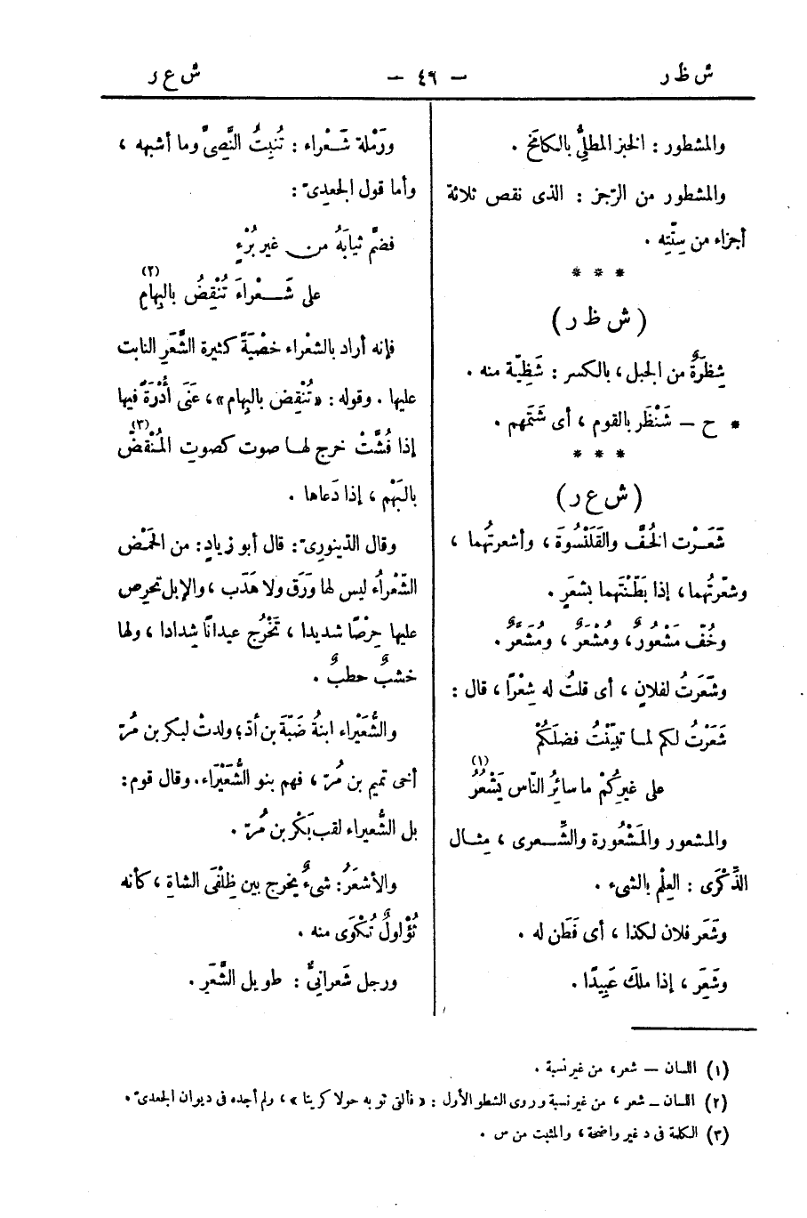 وقال الدّينورِيّ: قال أبو زيادٍ: من الحَمْض الشّعْراءُ ليس لها وَرَق ولا هَدَب، والإبل تحرِص عليها حِرْصًا شديدا، تَخْرُج عيدانًا شِدادا، ولها خشبٌ حطبٌ.
