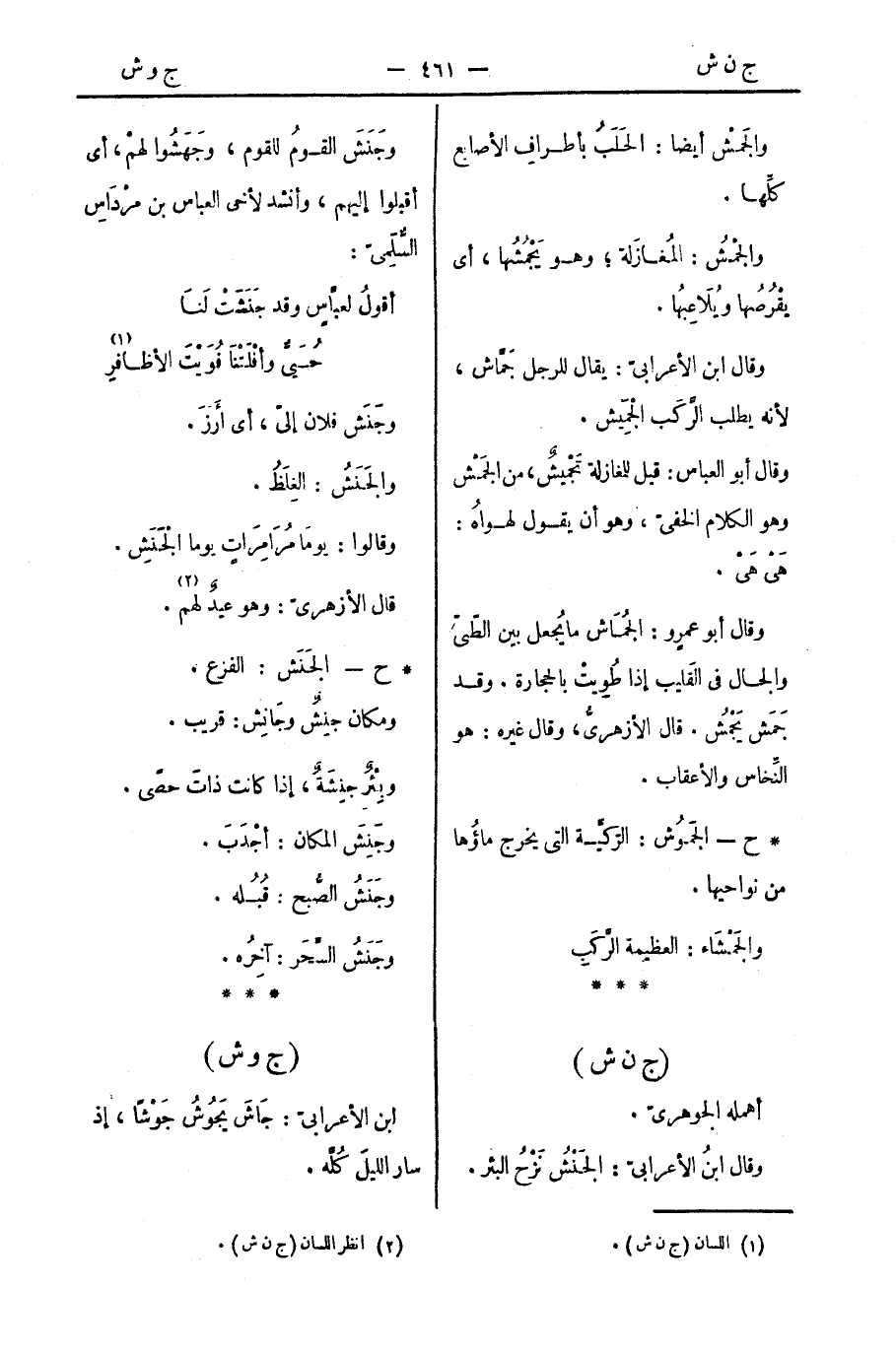 وجَنَشَ القومُ للقوم، وجَهَشُوا لهمْ، أي أقبلوا إليهم، وأنشد لأخي العباس بن مرْدَاسِ السُّلَمِيّ: