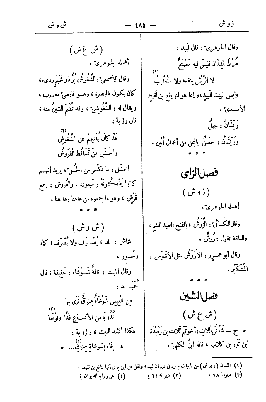 وقال الكسائيّ: الزَّوْشُ، بالفتح: العبد اللئيم، والعامّة تقول: زُوشٌ.