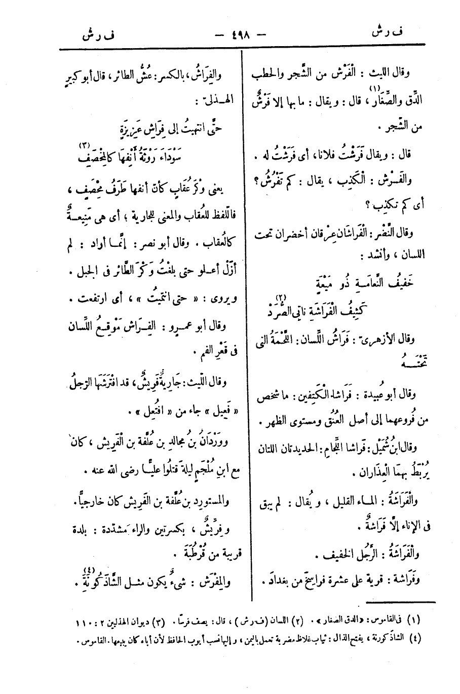 وقال الليث: الفَرْش من الشَّجر والحطب الدِّق والصِّغَار، قال: ويقال: ما بها إلا فَرْشٌ من الشّجر.