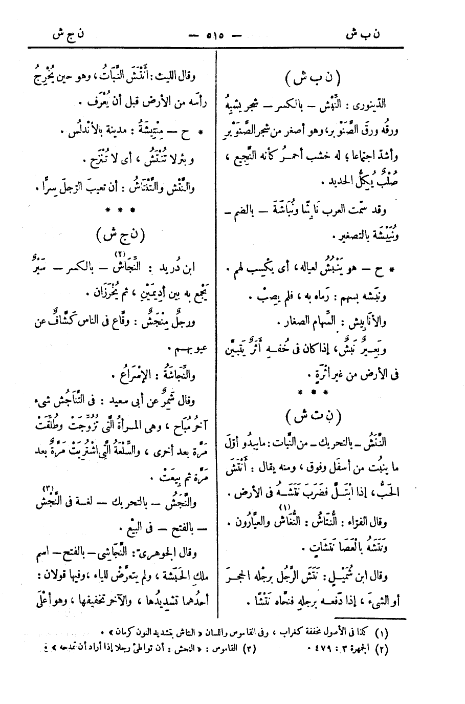 وقال الليث: أَنْتَشَ النَّبَاتُ، وهو حين يُخْرِجُ رأسَه من الأرض قبل أن يُعْرَف.