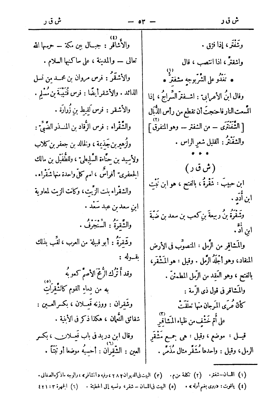 وقال ابن دريد في باب فَعِلان، بكسر العين: الشّقِران: أحسِبُه موضعا أو نَبْتًا.