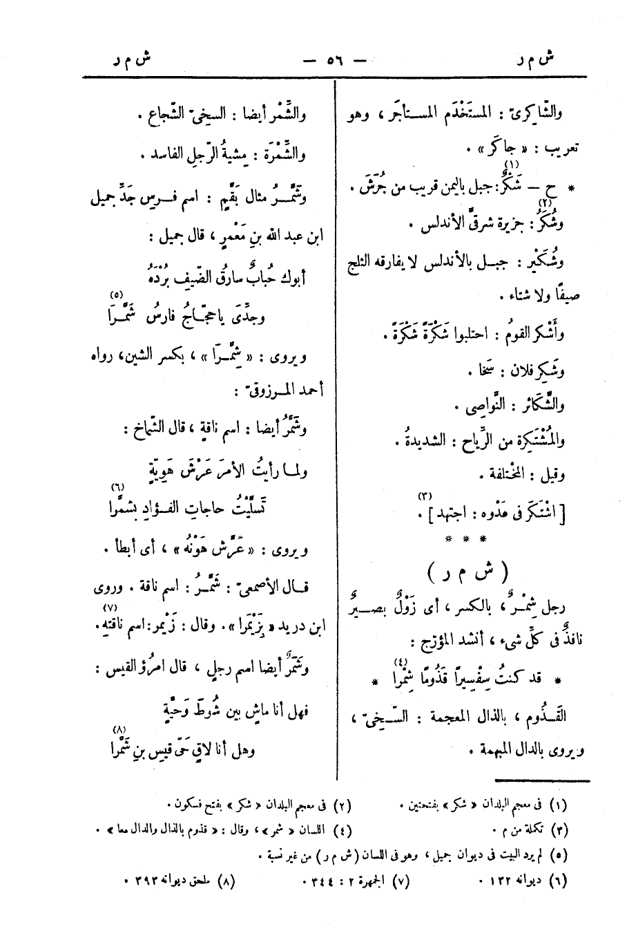 * ح - شَكْرٌ: جبل باليمن قريب من جُرَشَ.