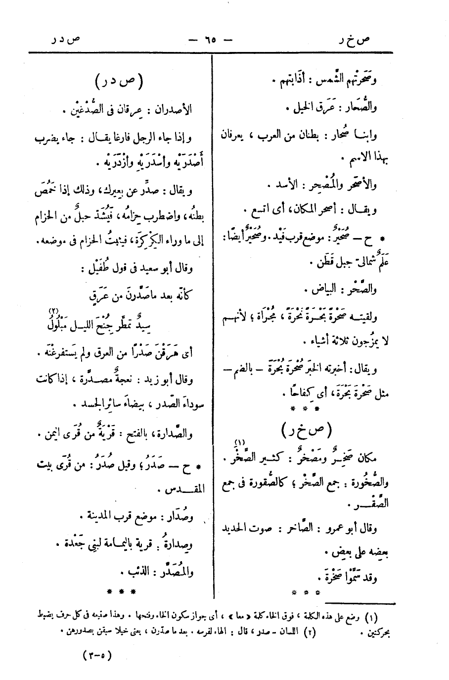 * ح - صُحَيْرٌ: موضع قرب فَيْد. وصُحَيْرٌ أيضًا: عَلَمٌ شماليّ جبل قَطَن.