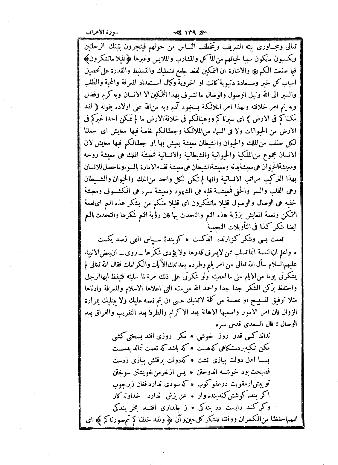 واعلم ان النعمة انما تسلب ممن لا يعرف قدرها ولا يؤدى شكرها- روى- ان بعض الأنبياء عليهم السلام سأل الله تعالى عن امر بلعم وطرده بعد تلك الآيات والكرامات فقال الله تعالى لم يشكرنى يوما من الأيام على ما أعطيته ولو شكرنى على ذلك مرة لما سلبته فتيقظ ايها الرجل واحتفظ بركن الشكر جدا جدا واحمد الله على مننه التي أعلاها الإسلام والمعرفة وأدناها مثلا توفيق لتسبيح او عصمة من كلمة لا تعنيك عسى ان يتم نعمه عليك ولا يبتليك بمرارة الزوال فان امر الأمور وأصعبها الاهانة بعد الكرام والطرد بعد التقريب والفراق بعد الوصال: قال السعدي قدس سره