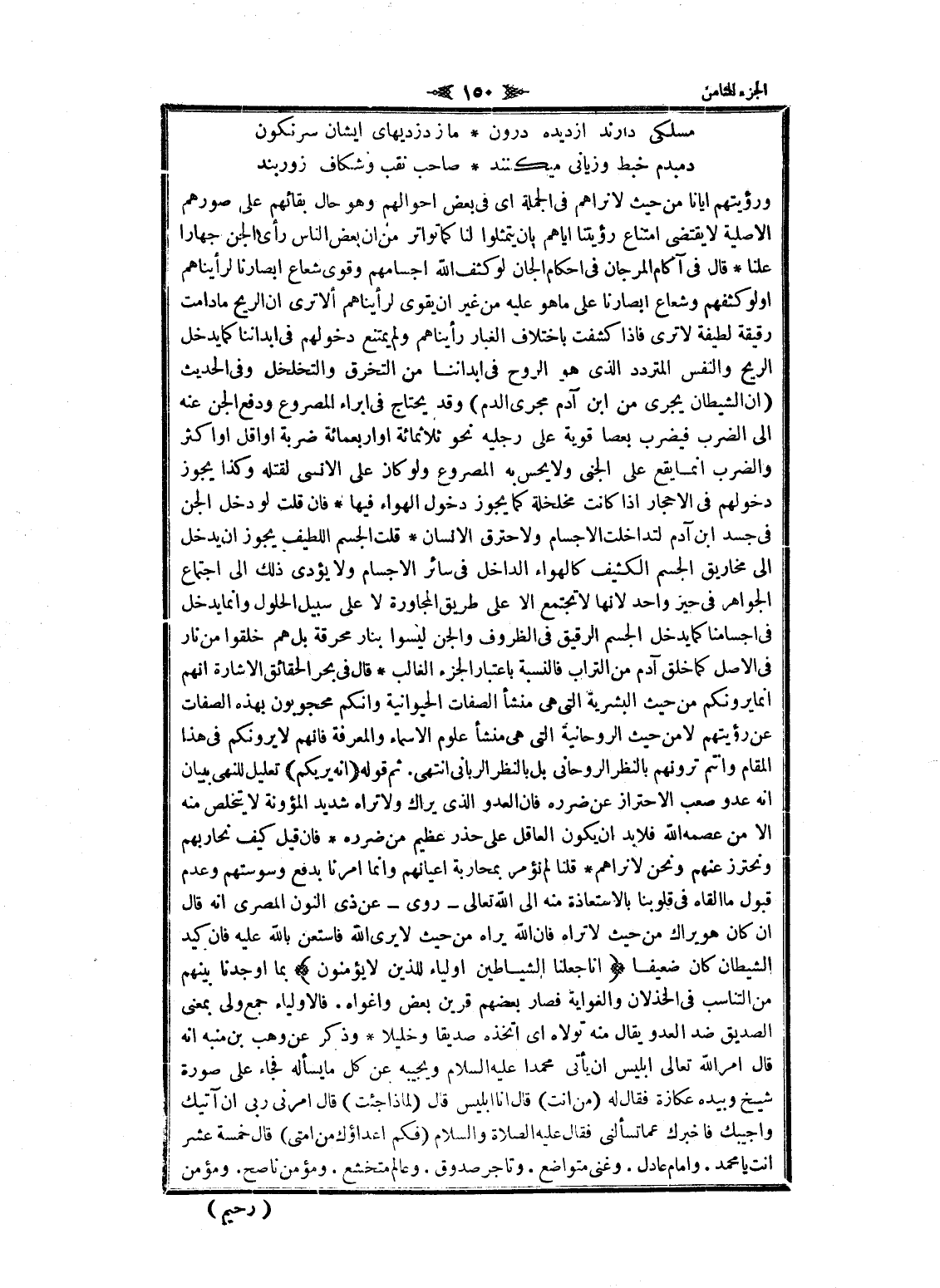 ورؤيتهم إيانا من حيث لانراهم فى الجملة اى فى بعض أحوالهم وهو حال بقائهم على صورهم الاصلية لا يقتضى امتناع رؤيتنا إياهم بان يتمثلوا لنا كما تواتر من ان بعض الناس رأى الجن جهارا علنا قال فى آكام المرجان فى احكام الجان لو كثف الله أجسامهم وقوى شعاع أبصارنا لرأيناهم او لو كثفهم وشعاع أبصارنا على ما هو عليه من غير ان يقوى لرأيناهم ألا ترى ان الريح مادامت رقيقة لطيفة لا ترى فاذا كشفت باختلاف الغبار رأيناهم ولم يمتنع دخولهم فى أبداننا كما يدخل الريح والنفس المتردد الذي هو الروح فى أبداننا من التخرق والتخلخل وفى الحديث (ان الشيطان يجرى من ابن آدم مجرى الدم) وقد يحتاج فى إبراء المصروع ودفع الجن عنه الى الضرب فيضرب بعصا قوية على رجليه نحو ثلاثمائة او اربعمائة ضربة او اقل او اكثر والضرب انما يقع على الجنى ولا يحس به المصروع ولو كان على الانسى لقتله وكذا يجوز دخولهم فى الأحجار إذا كانت مخلخلة كما يجوز دخول الهواء فيها فان قلت لو دخل الجن فى جسد ابن آدم لتداخلت الأجسام ولاحترق الإنسان قلت الجسم اللطيف يجوز ان يدخل الى مخاريق الجسم الكثيف كالهواء الداخل فى سائر الأجسام ولا يؤدى ذلك الى اجتماع الجواهر فى حيز واحد لانها لا تجتمع الا على طريق المجاورة لا على سبيل الحلول وانما يدخل فى أجسامنا كما يدخل الجسم الرقيق فى الظروف والجن ليسوا بنار محرقة بل هم خلقوا من نار فى الأصل كما خلق آدم من التراب فالنسبة باعتبار الجزء الغالب قال فى بحر الحقائق الاشارة انهم انما يرونكم من حيث البشرية التي هى منشأ الصفات الحيوانية وانكم محجوبون بهذه الصفات عن رؤيتهم لا من حيث الروحانية التي هى منشأ علوم الأسماء والمعرفة فانهم لا يرونكم فى هذا المقام وأنتم ترونهم بالنظر الروحاني بل بالنظر الرباني انتهى. ثم قوله إِنَّهُ يَراكُمْ تعليل للنهى ببيان انه عدو صعب الاحتراز عن ضرره فان العدو الذي يراك ولا تراه شديد المئونة لا يتخلص منه الا من عصمه الله فلا بد ان يكون العاقل على حذر عظيم من ضرره فان قيل كيف نحاربهم ونحترز عنهم ونحن لا نراهم قلنا لم نؤمر بمحاربة أعيانهم وانما أمرنا بدفع وسوستهم وعدم قبول ما ألقاه فى قلوبنا بالاستعاذة منه الى الله تعالى- روى- عن ذى النون المصري انه قال ان كان هو يراك من حيث لا تراه فان الله يراه من حيث لا يرى الله فاستعن بالله عليه فان كيد الشيطان كان ضعيفا إِنَّا جَعَلْنَا الشَّياطِينَ أَوْلِياءَ لِلَّذِينَ لا يُؤْمِنُونَ بما أوجدنا بينهم من التناسب فى الخذلان والغواية فصار بعضهم قرين بعض واغواه. فالاولياء جمع ولى بمعنى الصديق ضد العدو يقال منه تولاه اى اتخذه صديقا وخليلا وذكر عن وهب بن منبه انه قال امر الله تعالى إبليس ان يأتى محمدا عليه السلام ويجيبه عن كل ما يسأله فجاء على صورة شيخ وبيده عكازة فقال له (من أنت) قال انا إبليس قال (لماذا جئت) قال أمرني ربى ان آتيك وأجيبك فاخبرك عما تسألنى فقال عليه الصلاة والسلام (فكم اعداؤك من أمتي) قال خمسة عشر أنت يا محمد. وامام عادل. وغنى متواضع. وتاجر صدوق. وعالم متخشع. ومؤمن ناصح. ومؤمن