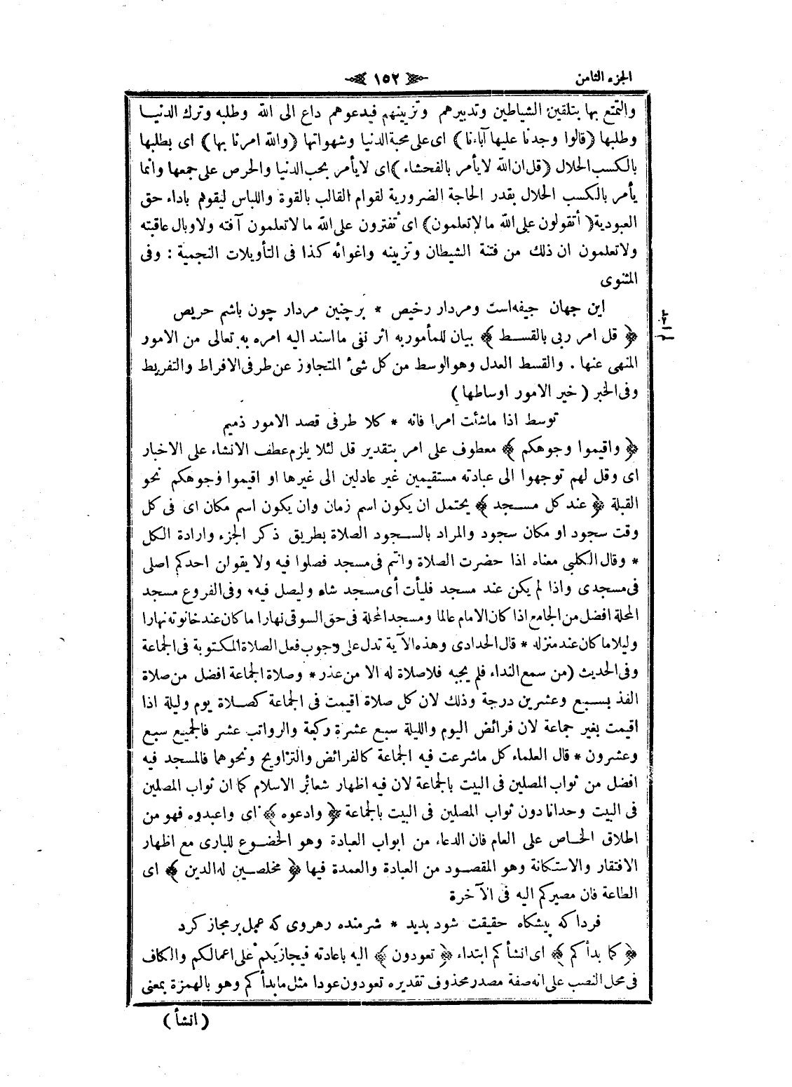 والتمتع بها بتلقين الشياطين وتدبيرهم وتزيينهم فيدعوهم داع الى الله وطلبه وترك الدنيا وطلبها قالُوا وَجَدْنا عَلَيْها آباءَنا اى على محبة الدنيا وشهواتها وَاللَّهُ أَمَرَنا بِها اى بطلبها بالكسب الحلال قُلْ إِنَّ اللَّهَ لا يَأْمُرُ بِالْفَحْشاءِ اى لا يأمر بحب الدنيا والحرص على جمعها وانما يأمر بالكسب الحلال بقدر الحاجة الضرورية لقوام القالب بالقوة واللباس ليقوم بأداء حق العبودية أَتَقُولُونَ عَلَى اللَّهِ ما لا تَعْلَمُونَ اى تفترون على الله ما لا تعلمون آفته ولا وبال عاقبته ولا تعلمون ان ذلك من فتنة الشيطان وتزيينه واغوائه كذا فى التأويلات النجمية: وفى المثنوى
