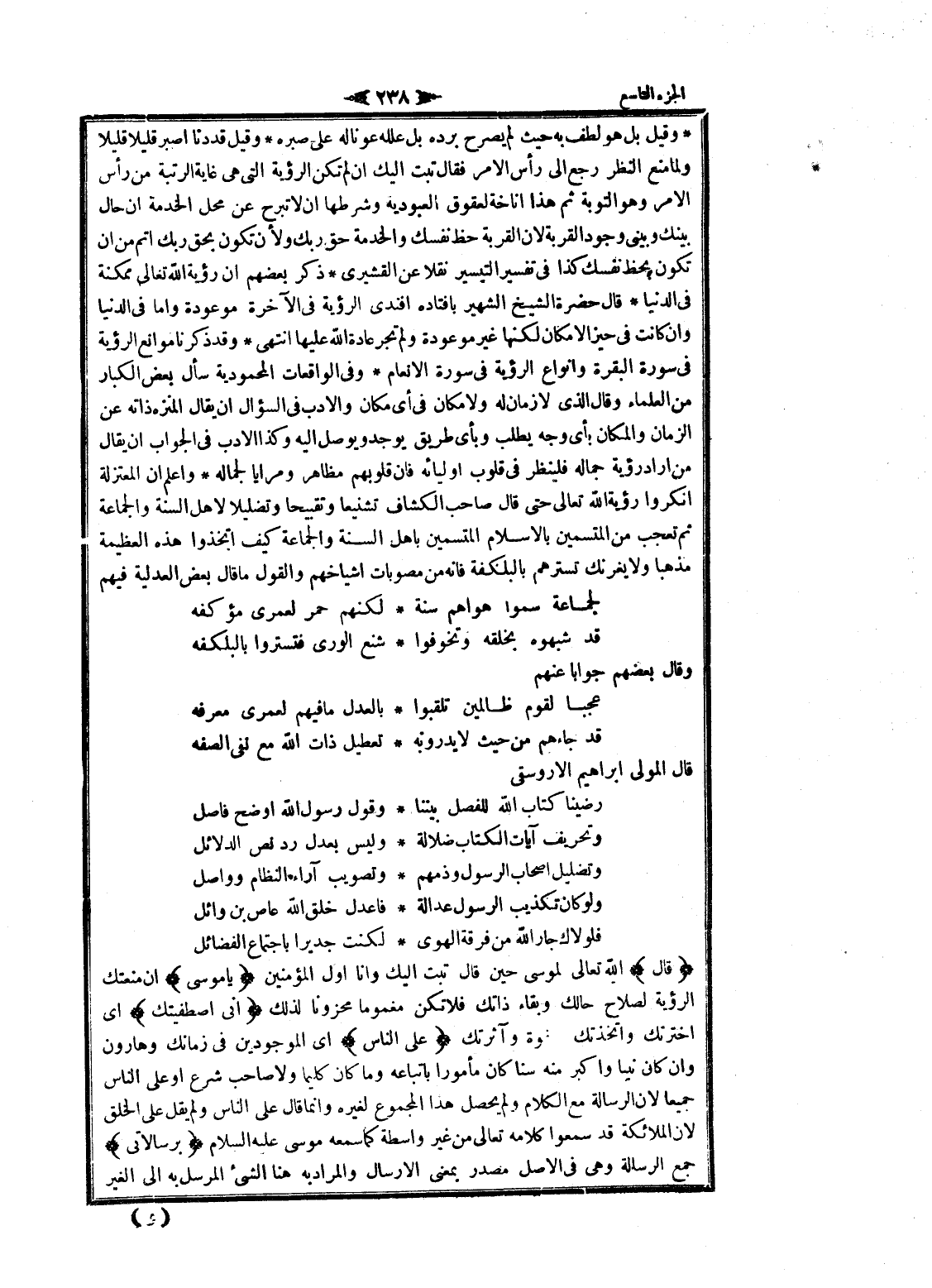 وقيل بل هو لطف به حيث لم يصرح برده بل علله عونا له على صبره وقيل قددنا اصبر قليلا قليلا ولما منع النظر رجع الى رأس الأمر فقال تبت إليك ان لم تكن الرؤية التي هى غاية الرتبة من رأس الأمر وهو التوبة ثم هذا اناخة لعقوق العبودية وشرطها ان لا تبرح عن محل الخدمة ان حال بينك وبينى وجود القربة لان القربة حظ نفسك والخدمة حق ربك ولأن تكون بحق ربك أتم من ان تكون بحظ نفسك كذا فى تفسير التيسير نقلا عن القشيري ذكر بعضهم ان رؤية الله تعالى ممكنة فى الدنيا قال حضرة الشيخ الشهير بافتاده افندى الرؤية فى الآخرة موعودة واما فى الدنيا وان كانت فى حيز الإمكان لكنها غير موعودة ولم تجر عادة الله عليها انتهى وقد ذكرنا موانع الرؤية فى سورة البقرة وانواع الرؤية فى سورة الانعام وفى الواقعات المحمودية سأل بعض الكبار من العلماء وقال الذي لا زمان له ولا مكان فى أي مكان والأدب فى السؤال ان يقال المنزه ذاته عن الزمان والمكان بأى وجه يطلب وبأى طريق يوجد ويوصل اليه وكذا الأدب فى الجواب ان يقال من أراد رؤية جماله فلينظر فى قلوب أوليائه فان قلوبهم مظاهر ومرايا لجماله واعلم ان المعتزلة أنكروا رؤية الله تعالى حتى قال صاحب الكشاف تشنيعا وتقبيحا وتضليلا لاهل السنة والجماعة ثم تعجب من المتسمين بالإسلام المتسمين باهل السنة والجماعة كيف اتخذوا هذه العظيمة مذهبا ولا يغرنك تسترهم بالبلكفة فانه من مصوبات اشياخهم والقول ما قال بعض العدلية فيهم