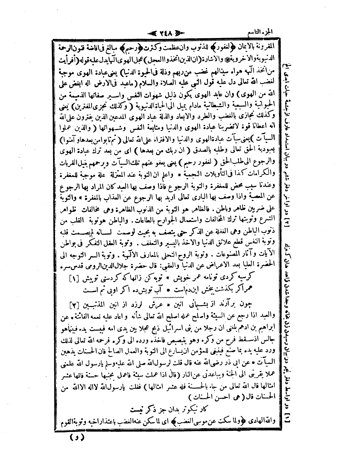 كرسيه كردى تو نامه عمر خويش ... توبه كن زانها كه كردستى تو پيش «1»