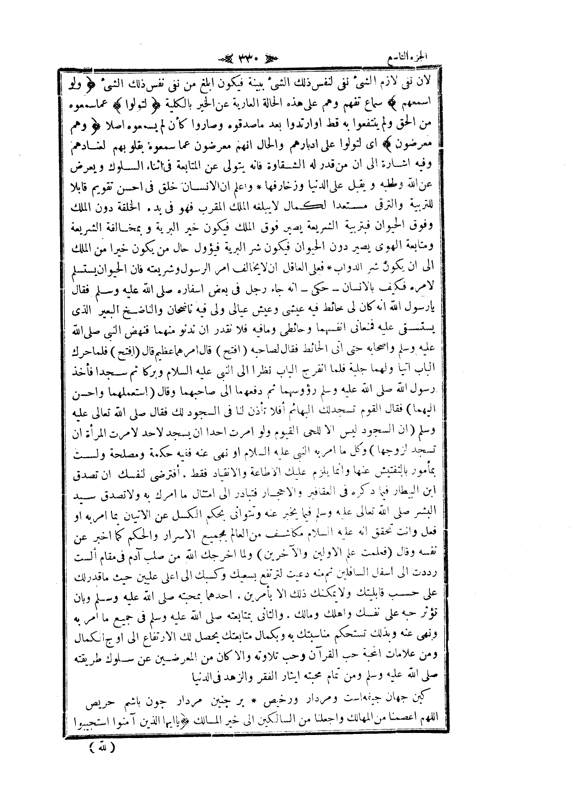 لان نفى لازم الشيء نفى لنفس ذلك الشيء ببينة فيكون ابلغ من نفى نفس ذلك الشيء وَلَوْ أَسْمَعَهُمْ سماع تفهم وهم على هذه الحالة العارية عن الخير بالكلية لَتَوَلَّوْا عما سمعوه من الحق ولم ينتفعوا به قط او ارتدوا بعد ما صدقوه وصاروا كأن لم يسمعوه أصلا وَهُمْ مُعْرِضُونَ اى لتولوا على ادبارهم والحال انهم معرضون عما سمعوه بقلوبهم لعنادهم وفيه اشارة الى ان من قدر له الشقاوة فانه يتولى عن المتابعة فى أثناء السلوك ويعرض عن الله وطلبه ويقبل على الدنيا وزخارفها واعلم ان الإنسان خلق فى احسن تقويم قابلا للتربية والترقي مستعدا لكمال لا يبلغه الملك المقرب فهو فى بدء الخلقة دون الملك وفوق الحيوان فبتربية الشريعة يصير فوق الملك فيكون خير البرية وبمخالفة الشريعة ومتابعة الهوى يصير دون الحيوان فيكون شر البرية فيؤول حال من يكون خيرا من الملك الى ان يكون شر الدواب فعلى العاقل ان لا يخالف امر الرسول وشريعته فان الحيوان يستسلم لامره فكيف بالإنسان- حكى- انه جاء رجل فى بعض أسفاره صلى الله عليه وسلم فقال يا رسول الله انه كان لى حائط فيه عيشى وعيش عيالى ولى فيه ناضحان والناضخ البعير الذي يستسقى عليه فمنعانى أنفسهما وحائطى وما فيه فلا نقدر ان ندنو منهما فنهض النبي صلى الله عليه وسلم وأصحابه حتى اتى الحائط فقال لصاحبه (افتح) قال أمرهما عظيم قال (افتح) فلما حرك الباب أتيا ولهما جلبة فلما انفرج الباب نظرا الى النبي عليه السلام وبركا ثم سجدا فأخذ رسول الله صلى الله عليه وسلم رؤوسهما ثم دفعهما الى صاحبهما وقال (استعملهما واحسن إليهما) فقال القوم تسجد لك البهائم أفلا تأذن لنا فى السجود لك فقال صلى الله تعالى عليه وسلم (ان السجود ليس الا للحى القيوم ولو أمرت أحدا ان يسجد لاحد لامرت المرأة ان تسجد لزوجها) وكل ما امر به النبي عليه السلام او نهى عنه ففيه حكمة ومصلحة ولست بمأمور بالتفتيش عنها وانما يلزم عليك الاطاعة والانقياد فقط. أفترضى لنفسك ان تصدق ابن البيطار فيما ذكره فى العقاقير والأحجار فتبادر الى امتثال ما أمرك به ولا تصدق سيد البشر صلى الله تعالى عليه وسلم فيما يخبر عنه وتتوانى بحكم الكسل عن الإتيان بما امر به او فعل وأنت تحقق انه عليه السلام مكاشف من العالم بجميع الاسرار والحكم كما اخبر عن نفسه وقال (فعلمت علم الأولين والآخرين) ولما اخرجك الله من صلب آدم فى مقام ألست رددت الى أسفل السافلين ثم منه دعيت لترتفع بسعيك وكسبك الى أعلى عليين حيث ما قدر لك على حسب قابليتك ولا يمكنك ذلك الا بأمرين. أحدهما بمحبته صلى الله عليه وسلم وبان تؤثر حبه على نفسك وأهلك ومالك. والثاني بمتابعته صلى الله عليه وسلم فى جميع ما امر به ونهى عنه وبذلك تستحكم مناسبتك به وبكمال متابعتك يحصل لك الارتفاع الى اوج الكمال ومن علامات المحبة حب القرآن وحب تلاوته والا كان من المعرضين عن سلوك طريقته صلى الله عليه وسلم ومن تمام محبته إيثار الفقر والزهد فى الدنيا