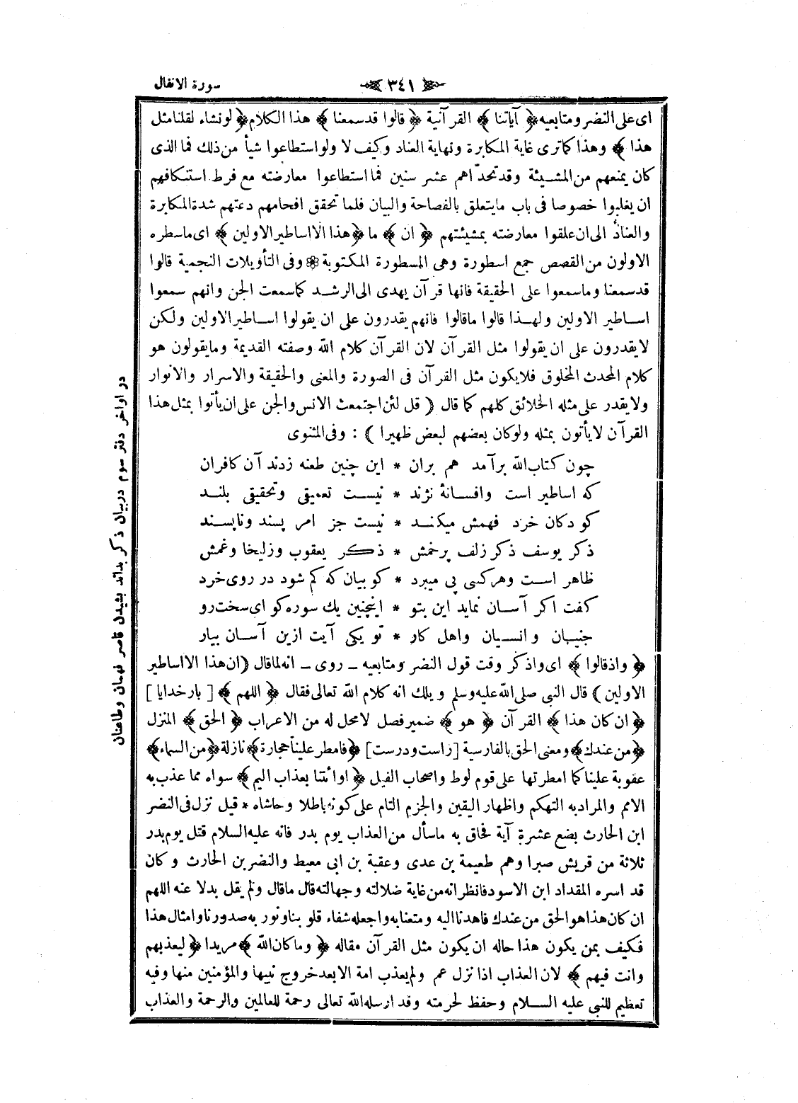 چون كتاب الله بر آمد هم بران ... اين چنين طعنه زدند آن كافران
