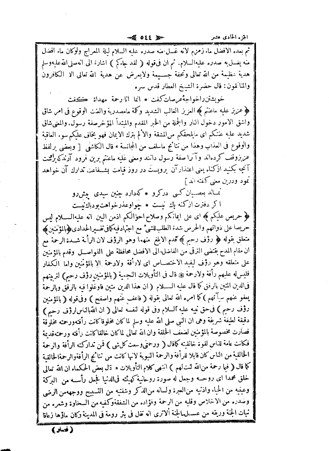 ثم بعده الأفضل ماء زمزم لانه غسل منه صدره عليه السلام ليلة المعراج ولو كان ماء أفضل منه يغسل به صدره عليه السلام. ثم ان فى قوله لَقَدْ جاءَكُمْ اشارة الى انه صلى الله عليه وسلم هدية عظيمة من الله تعالى وتحفة جسيمة ولا يعرض عن هدية الله تعالى الا الكافرون والمنافقون: قال حضرة الشيخ العطار قدس سره