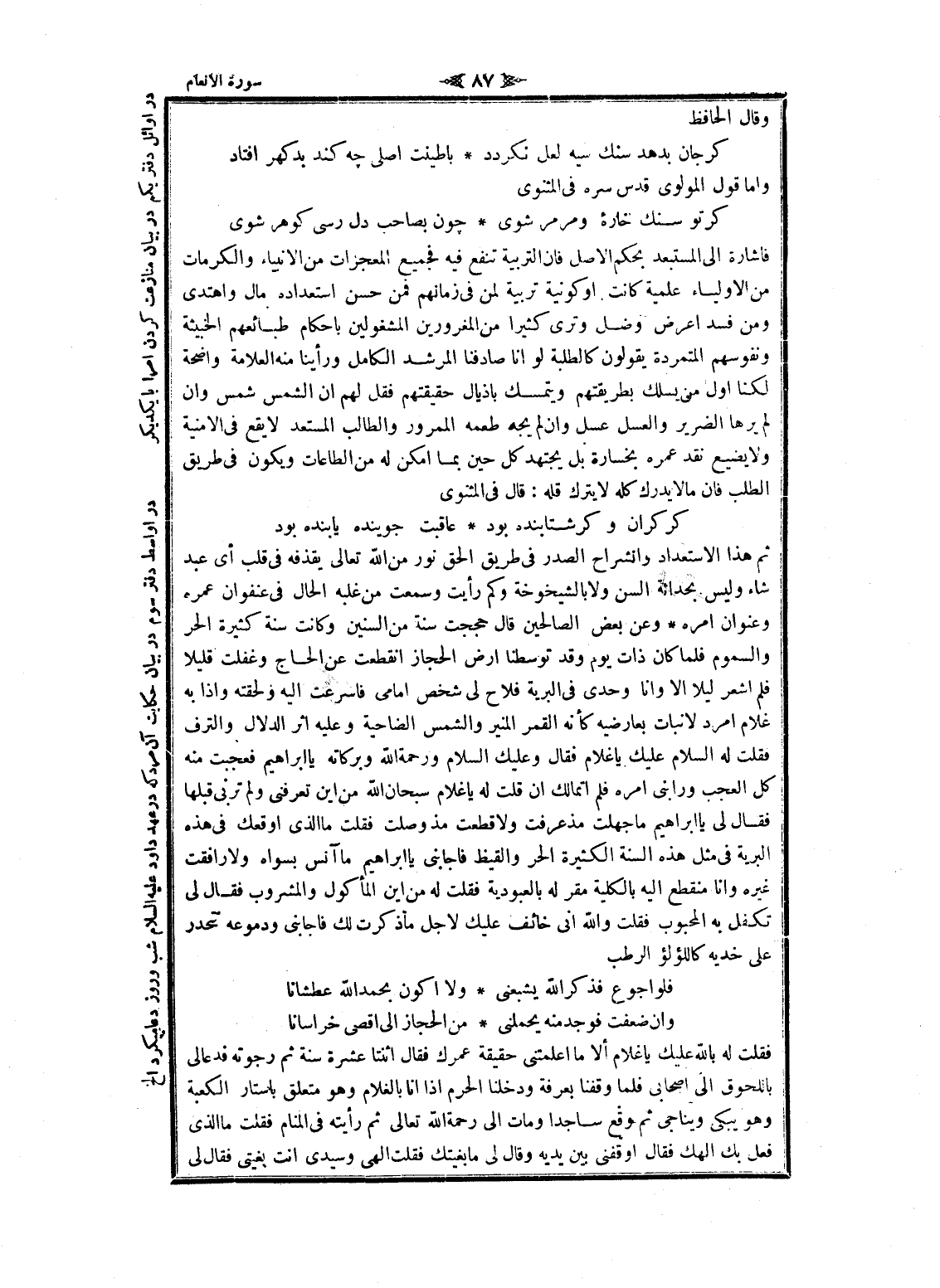 فقلت له بالله عليك يا غلام ألا ما أعلمتني حقيقة عمرك فقال اثنتا عشرة سنة ثم رجوته فدعا لى باللحوق الى أصحابي فلما وقفنا بعرفة ودخلنا الحرم إذا انا بالغلام وهو متعلق بأستار الكعبة وهو يبكى ويناجى ثم وقع ساجدا ومات الى رحمة الله تعالى ثم رأيته فى المنام فقلت ما الذي فعل بك إلهك فقال أوقفني بين يديه وقال لى ما بغيتك فقلت الهى وسيدى أنت بغيتي فقال لى