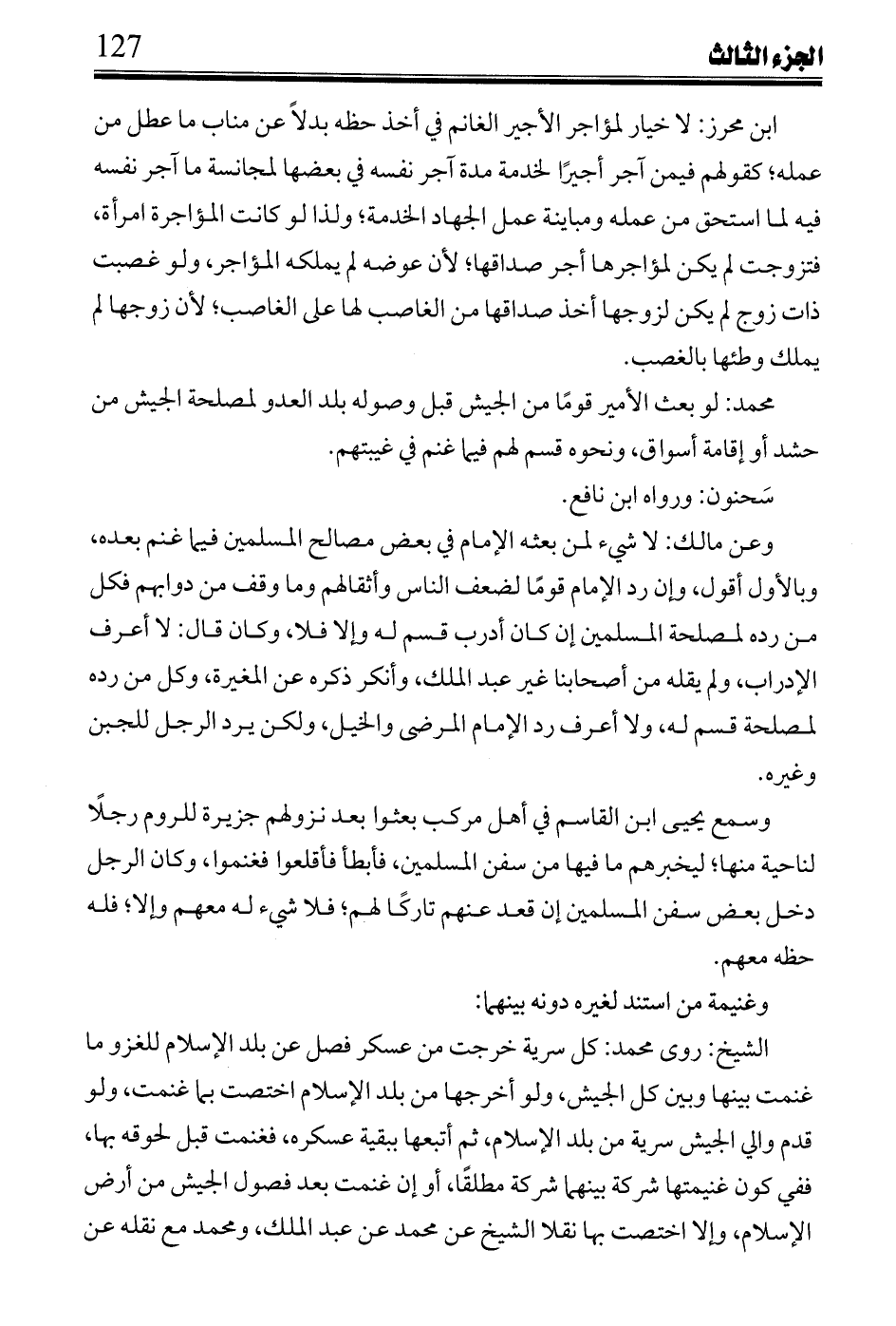 الشيخ: روى محمد: كل سرية خرجت من عسكر فصل عن بلد الإسلام للغزو ما غنمت بينها وبين كل الجيش، ولو أخرجها من بلد الإسلام اختصت بما غنمت، ولو قدم والي الجيش سرية من بلد الإسلام، ثم أتبعها ببقية عسكره، فغنمت قبل لحوقه بها، ففي كون غنيمتها شركة بينهما شركة مطلقاً، أو إن غنمت بعد فصول الجيش من أرض الإسلام، وإلا اختصت بها نقلا الشيخ عن محمد عن عبد الملك، ومحمد مع نقله عن