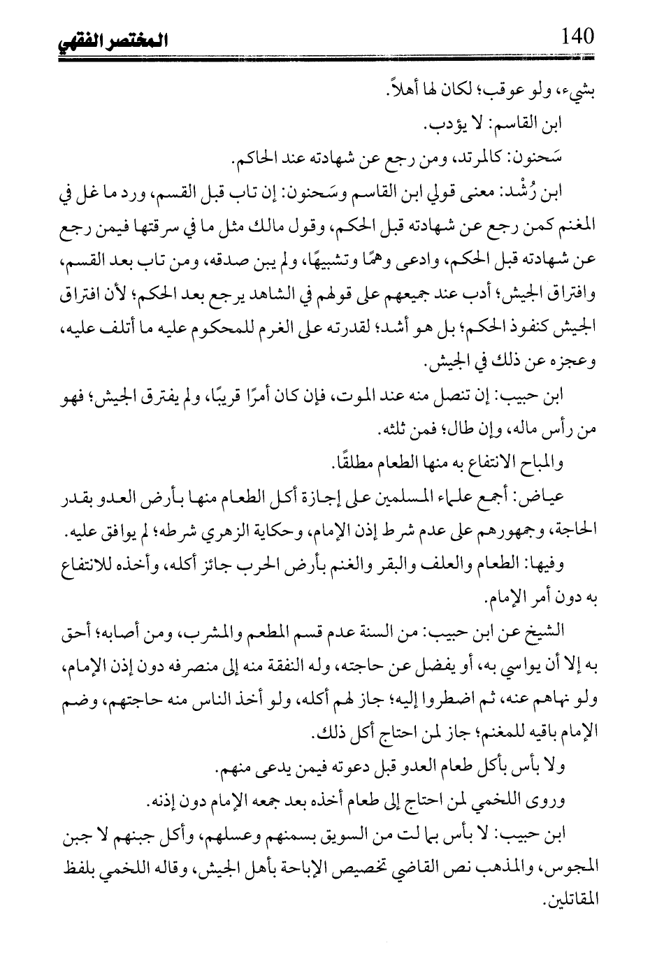 ابن حبيب: لا بأس بما لت من السويق بسمنهم وعسلهم، وأكل جبنهم لا جبن المجوس، والمذهب نص القاضي تخصيص الإباحة بأهل الجيش، وقاله اللخمي بلفظ المقاتلين.