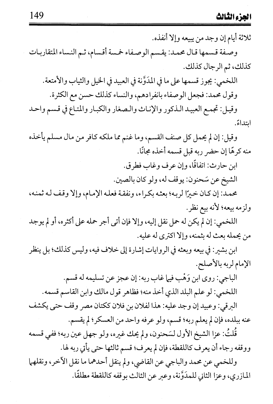 وللخمي عن محمد والباجي عن القاضي، ولم ينقل أحدهما ما نقل الآخر، ونقلهما المازري، وعزا الثاني للمدونة، وعبر عن الثالث بوقفه كاللقطة مطلقاً.