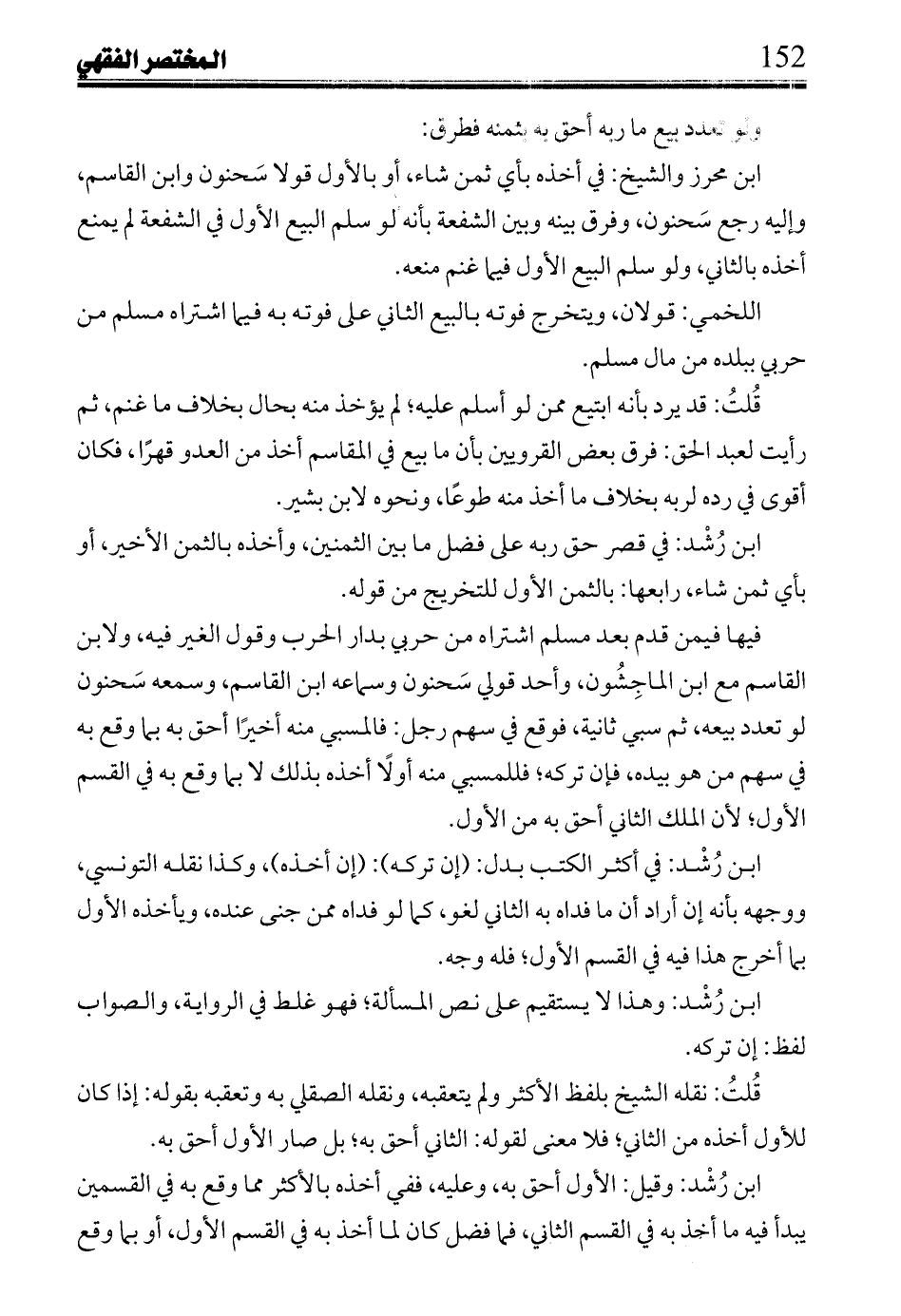 ابن رشد: في قصر حق ربه على فضل ما بين الثمنين، وأخذه بالثمن الأخير، أو بأي ثمن شاء، رابعها: بالثمن الأول للتخريج من قوله.