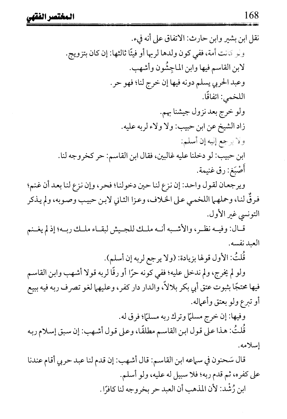 قلت: الأول قولها بزيادة: (ولا يرجع لربه إن أسلم).