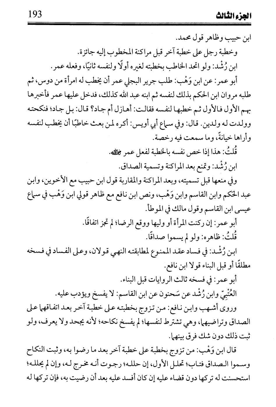 ابن رشد: وتمنع بعد المراكنة وتسمية الصداق.