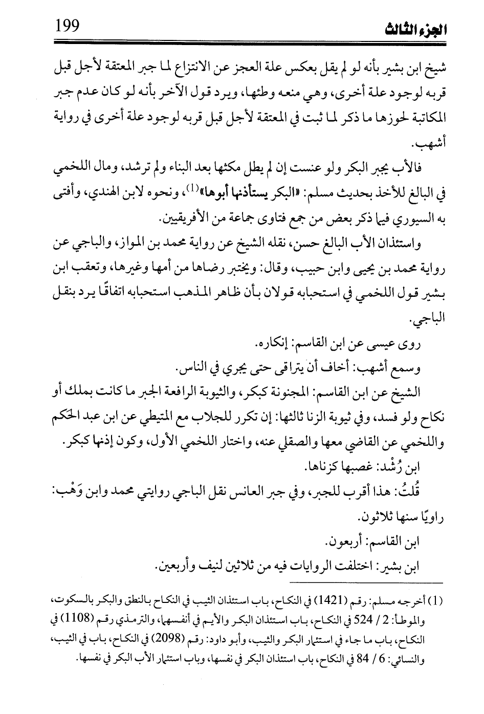 قلت: هذا أقرب للجبر، وفي جبر العانس نقل الباجي روايتي محمد وابن وهب راوياً سنها ثلاثون.