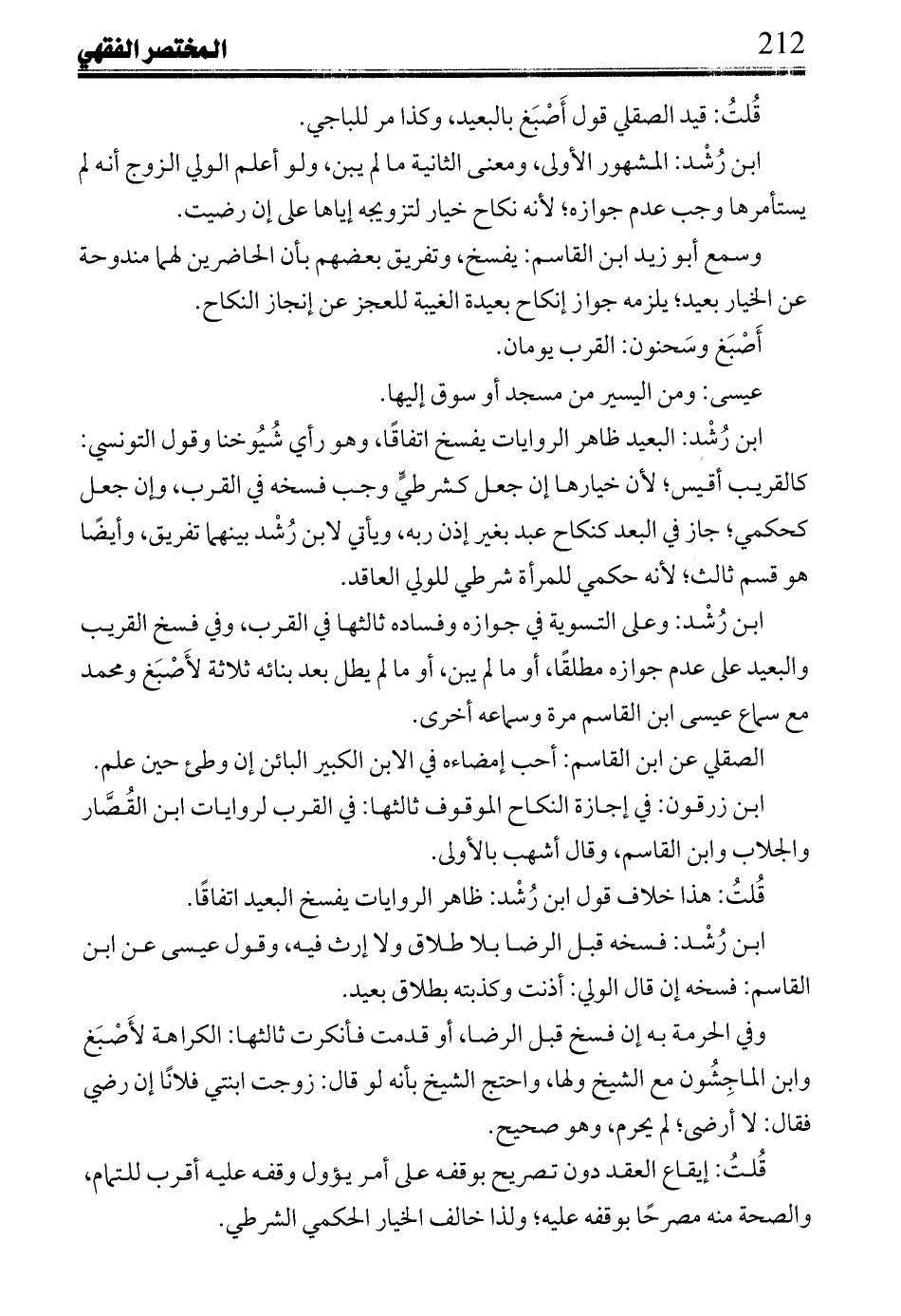 قُلتُ: هذا خلاف قول ابن رُشْد: ظاهر الروايات يفسخ البعيد اتفاقًا.