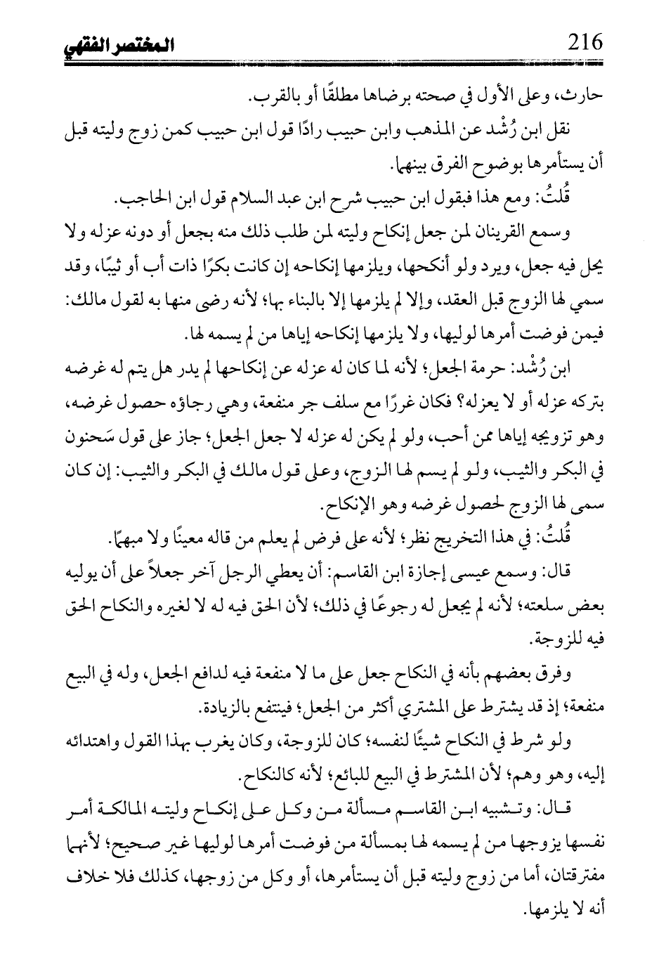 قُلتُ: ومع هذا فبقول ابن حبيب شرح ابن عبد السلام قول ابن الحاجب.