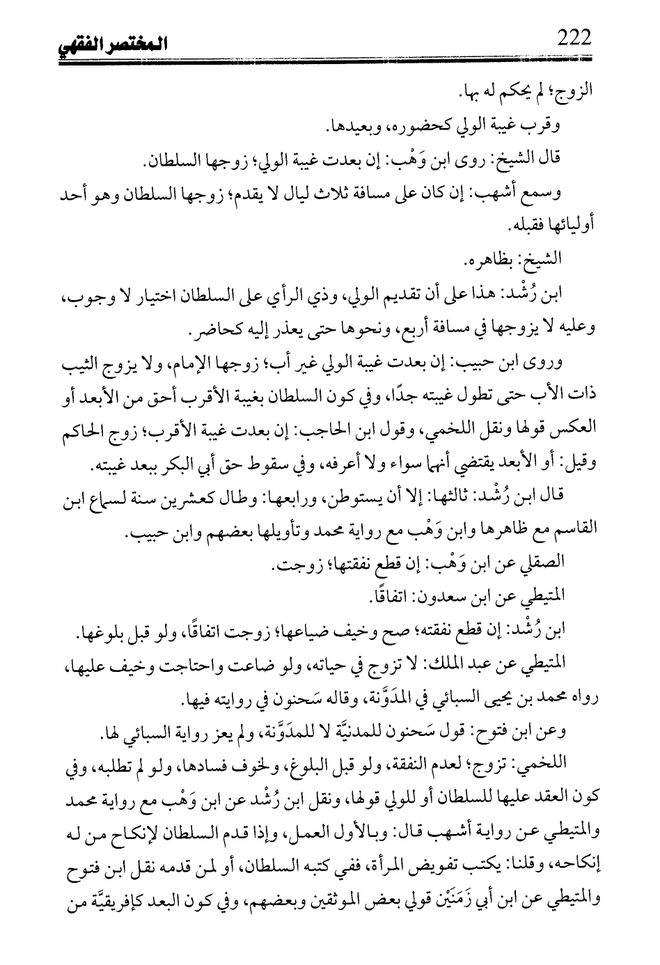 ابن رُشْد: هذا على أن تقديم الولي، وذي الرأي على السلطان اختيار لا وجوب، وعليه لا يزوجها في مسافة أربع، ونحوها حتى يعذر إليه كحاضر.
