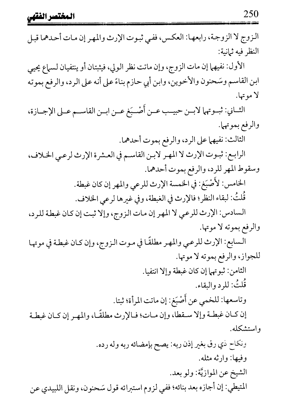 وتاسعها: للخمي عن أَصْبَغ: إن ماتت المرأة؛ ثبتا.