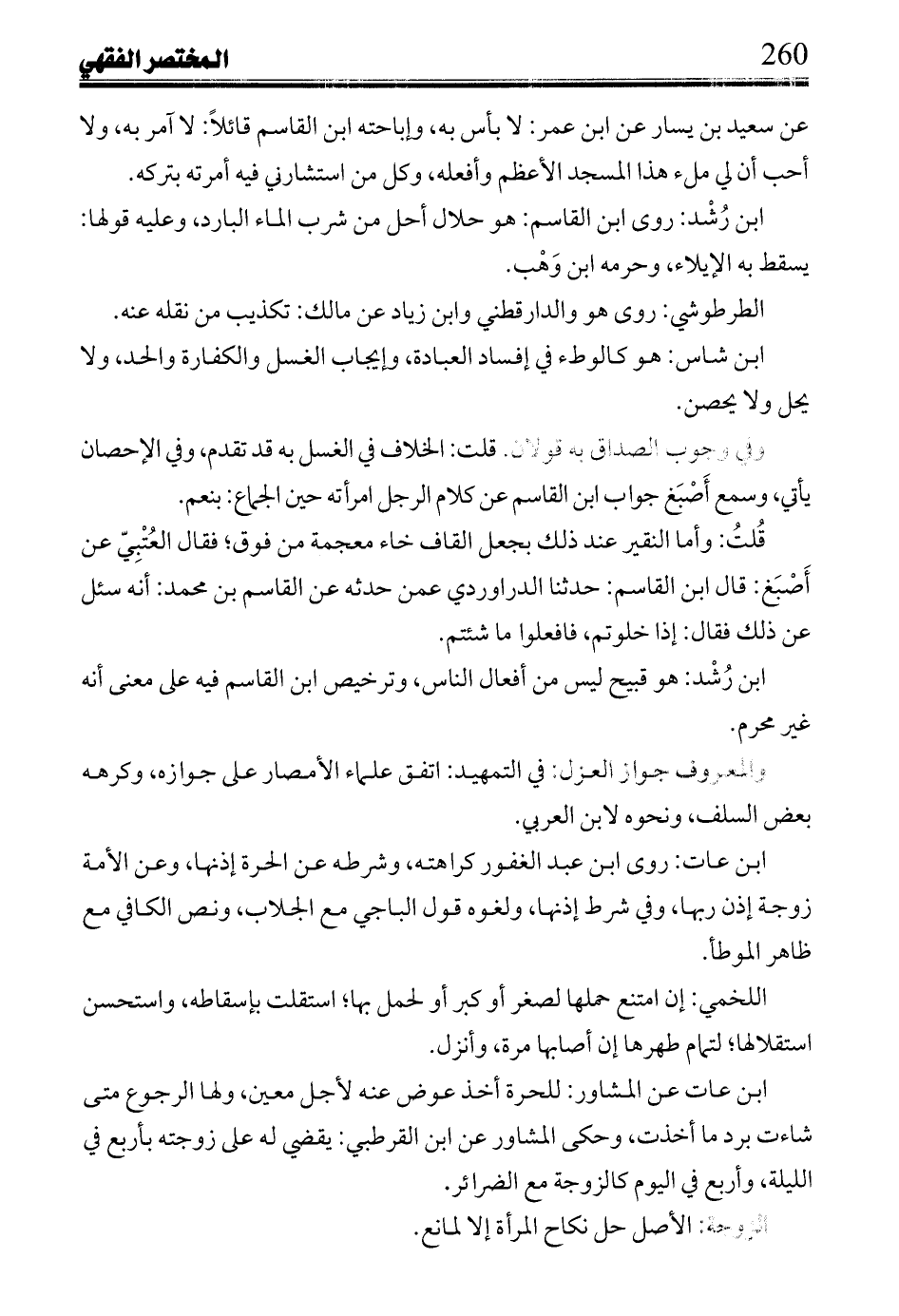 ابن رشد: روى ابن القاسم: هو حلال أحل من شرب الماء البارد، وعليه قولها: يسقط به الإيلاء، وحرمه ابن وهب.