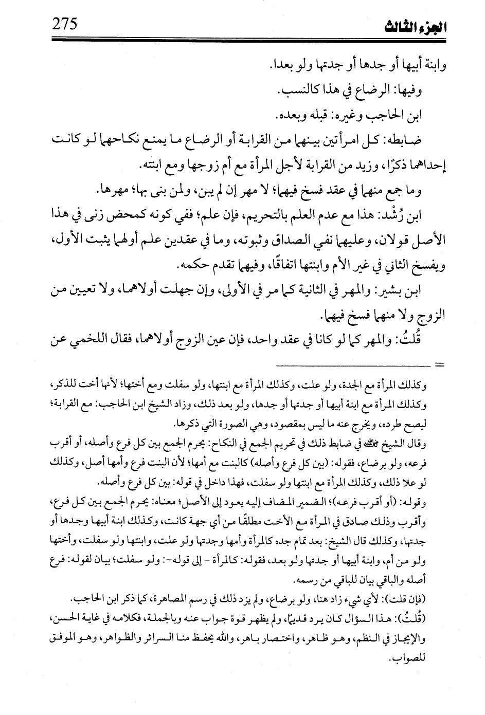 ابن رشد: هذا مع عدم العلم بالتحريم، فإن علم؛ ففي كونه كمحض زنى في هذا الأصل قولان، وعليهما نفي الصداق وثبوته، وما في عقدين علم أولهما يثبت الأول، ويفسخ الثاني في غير الأم وابنتها اتفاقًا، وفيهما تقدم حكمه.