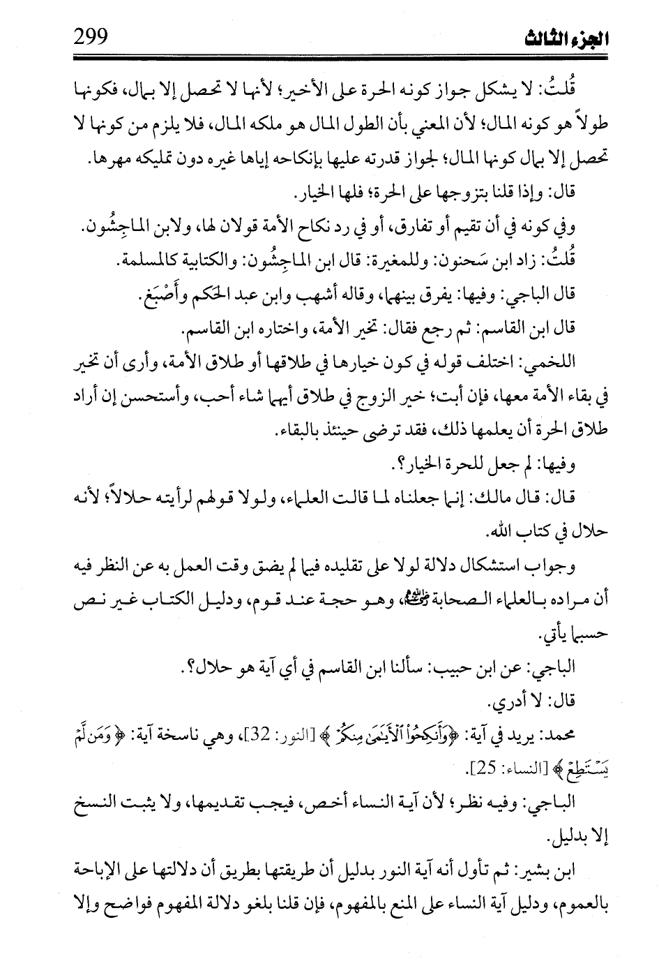 الباجي: وفيه نظر؛ لأن آية النساء أخص، فيجب تقديمها، ولا يثبت النسخ إلا بدليل.
