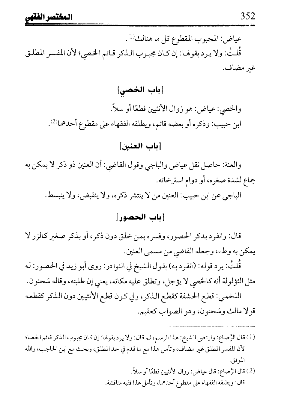 قلت: ولا يرد بقولها: إن كان مجبوب الذكر قائم الخصي؛ لأن المفسر المطلق غير مضاف.