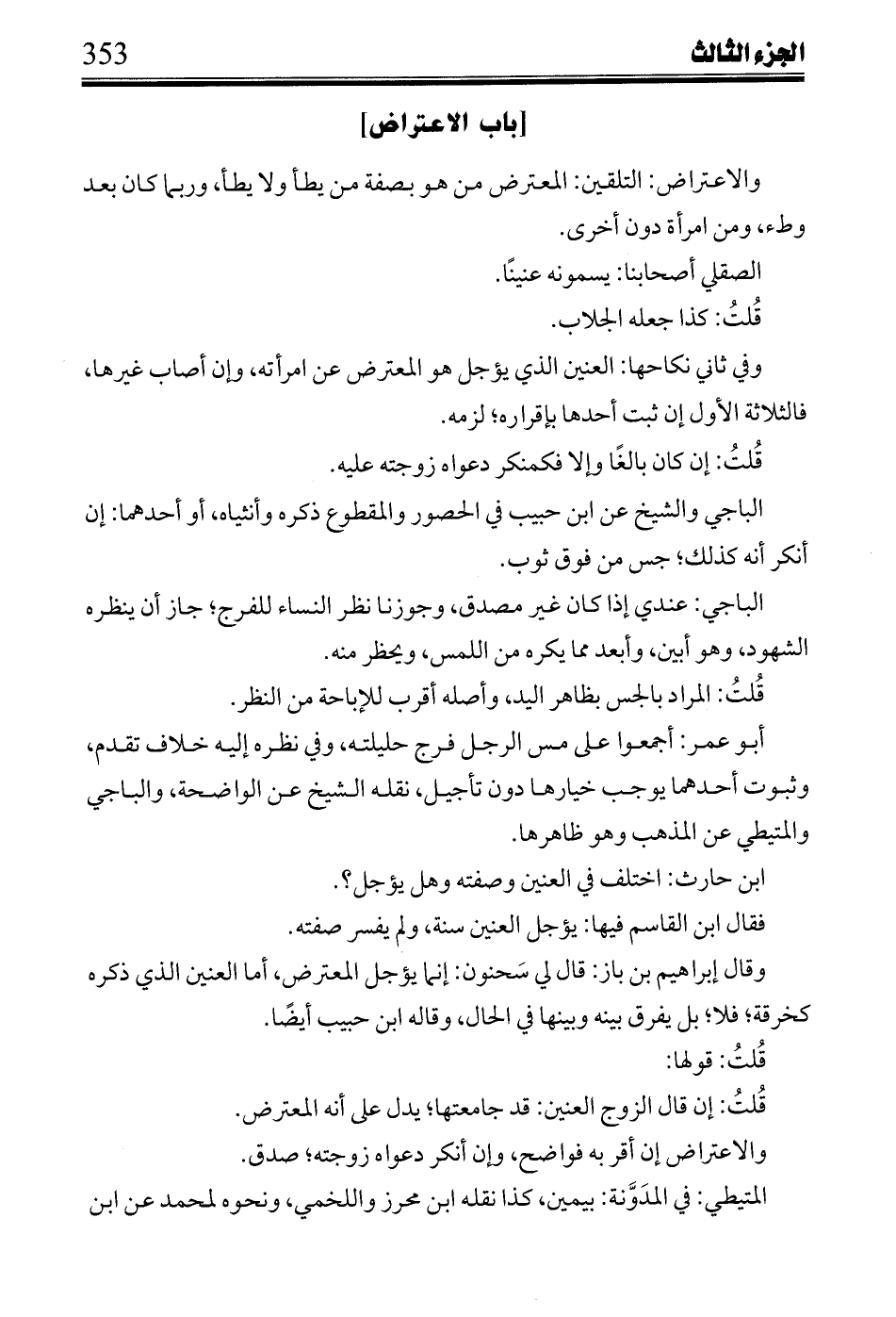 والاعتراض: التلقين: المعترض من هو بصفة من يطأ ولا يطأ، وربما كان بعد وطء، ومن امرأة دون أخرى.
