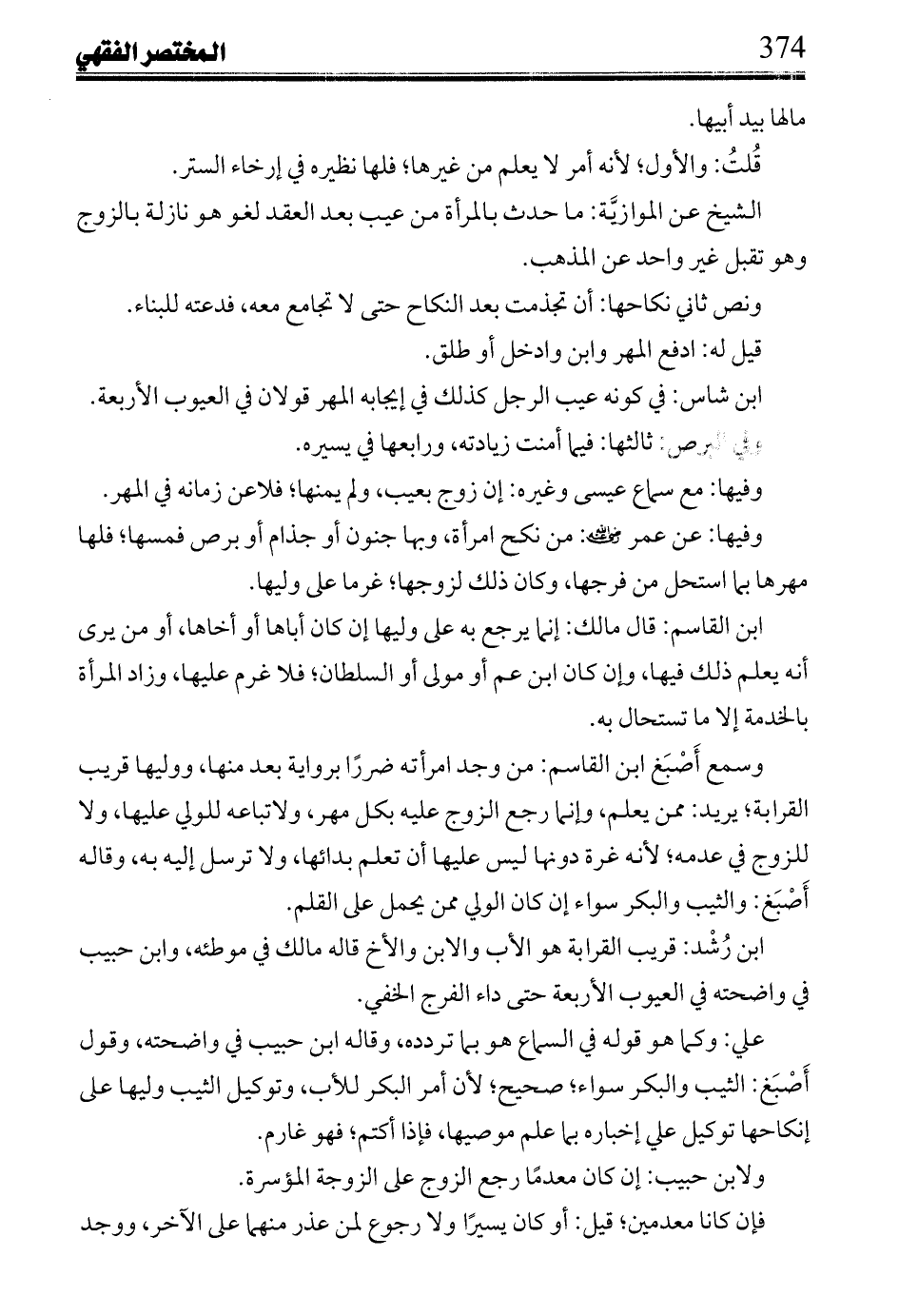 ابن رشد: قريب القرابة هو الأب والابن والأخ قاله مالك في موطئه، وابن حبيب في واضحته في العيوب الأربعة حتى داء الفرج الخفي.