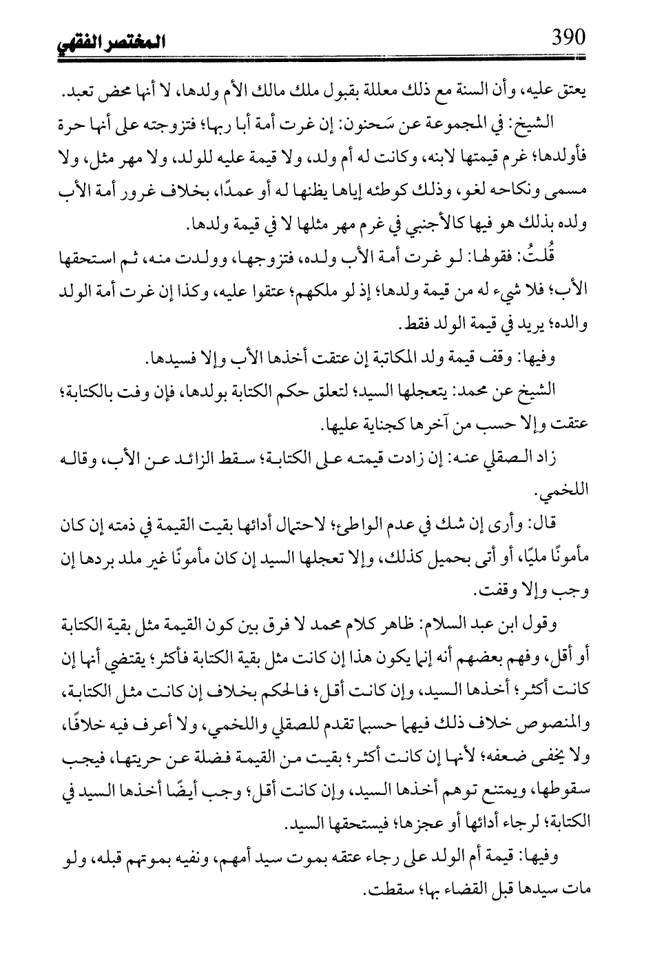 وقول ابن عبد السلام: ظاهر كلام محمد لا فرق بين كون القيمة مثل بقية الكتابة أو أقل، وفهم بعضهم أنه إنما يكون هذا إن كانت مثل بقية الكتابة فأكثر؛ يقتضي أنها إن كانت أكثر؛ أخذها السيد، وإن كانت أقل؛ فالحكم بخلاف إن كانت مثل الكتابة، والمنصوص خلاف ذلك فيهما حسبما تقدم للصقلي واللخمي، ولا أعرف فيه خلافاً، ولا يخفى ضعفه؛ لأنها إن كانت أكثر؛ بقيت من القيمة فضله عن حريتها، فيجب سقوطها، ويمتنع توهم أخذها السيد، وإن كانت أقل؛ وجب أيضاً أخذها السيد في الكتابة؛ لرجاء أدائها أو عجزها؛ فيستحقها السيد.