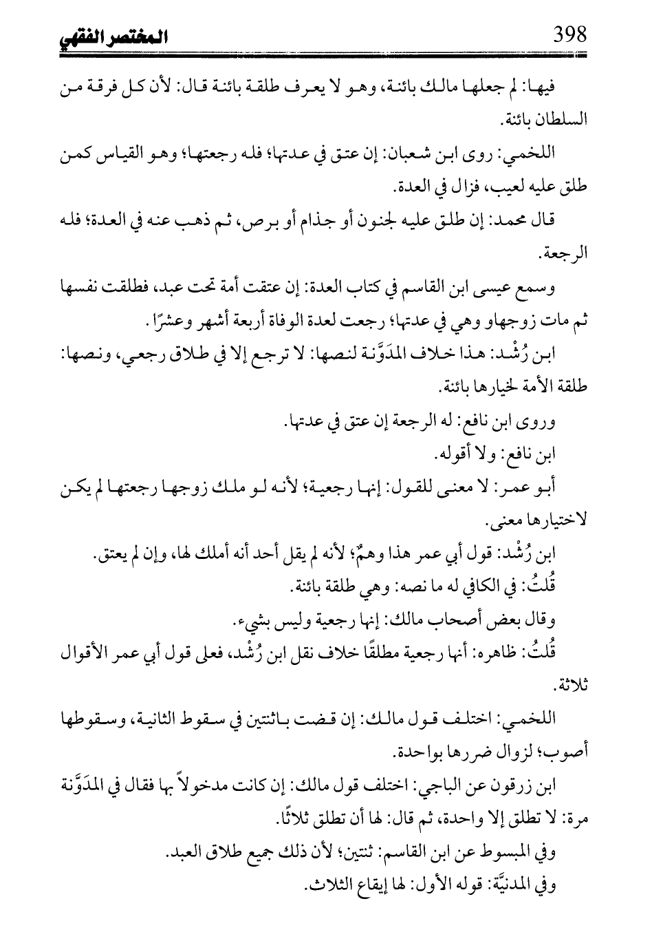 ابن رُشد: هذا خلاف المدونة لنصها: لا ترجع إلا في طلاق رجعي، ونصها: طلقة الأمة لخيارها بائنة.