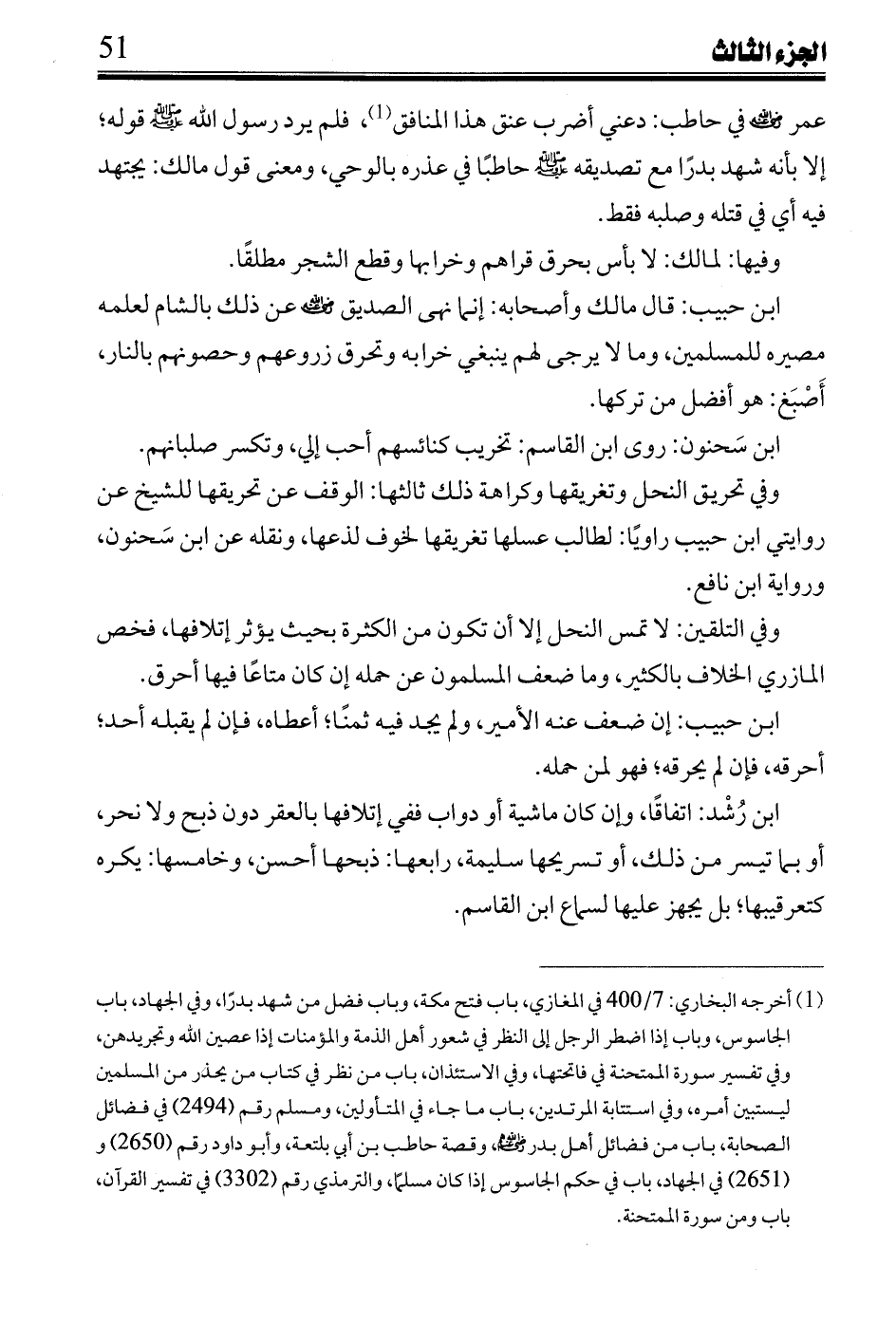 ابن حبيب: قال مالك وأصحابه: إنما نهى الصديق رضي الله عنه عن ذلك بالشام لعلمه مصيره للمسلمين، وما لا يرجى لهم ينبغي خرابه وتحرق زروعهم وحصونهم بالنار، أصبغ: هو أفضل من تركها.