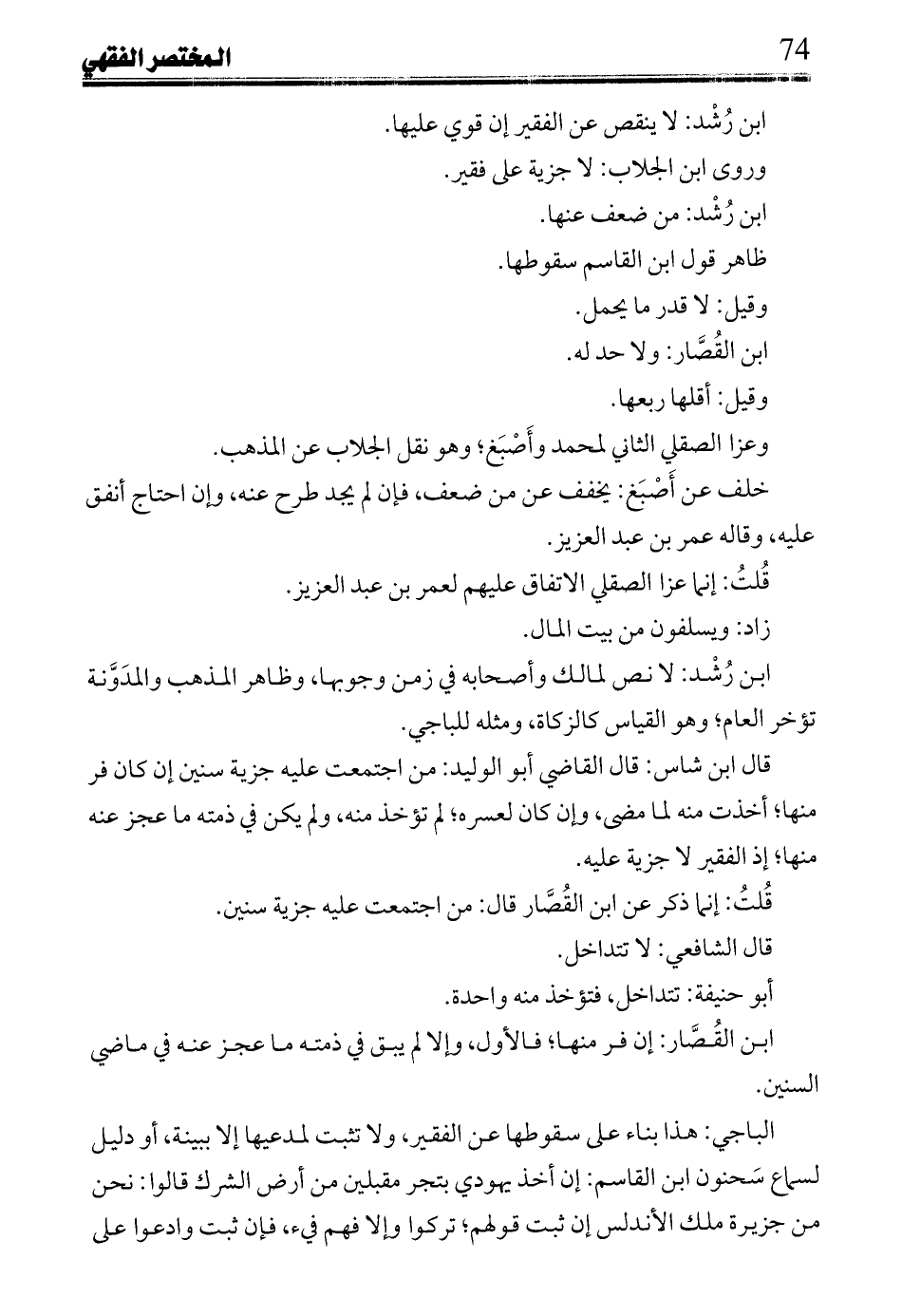 ابن رشد: لا ينقص عن الفقير إن قوي عليها.