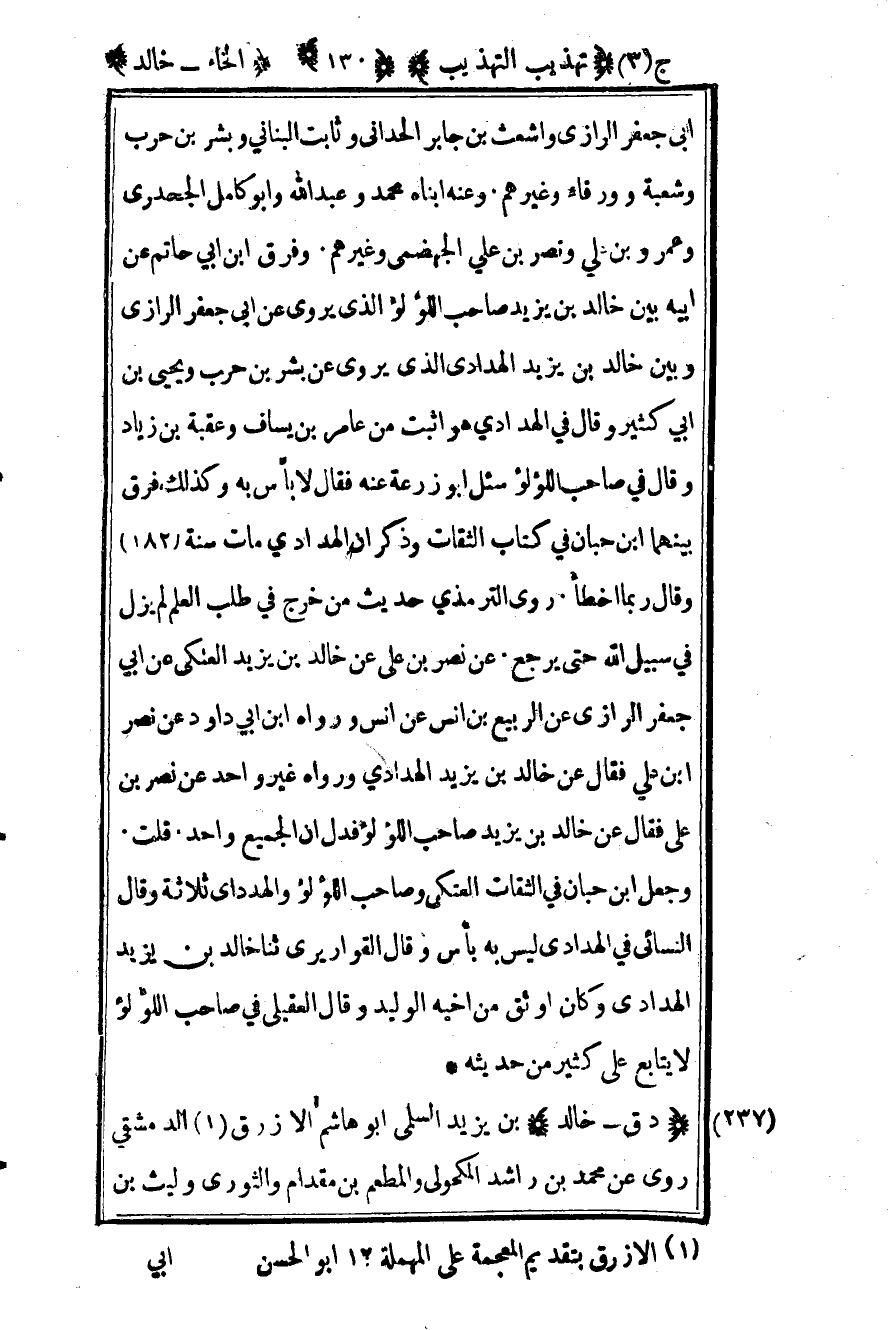 237- "د - خالد" بن يزيد السلمي أبو هاشم الأزرق1 الدمشقي روى عن محمد بن راشد المكحولي والمطعم بن مقدام والثوري وليث بن