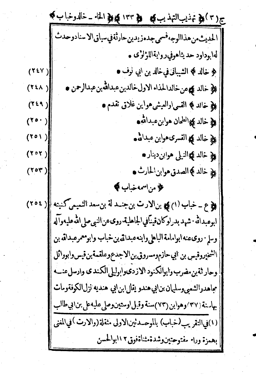 1 في التقريب "خباب" بالموحدتين الأولى مثقلة "والأرت" في المغني بهمزة وراء مفتوحتين وشدة مثناة 12 أبو الحسن.