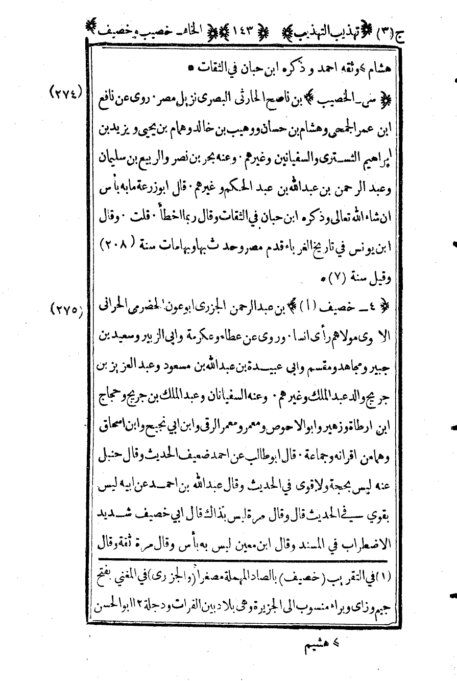 1 في التقريب "خصيف" بالصاد المهملة مصغرا "والجزري" في المغني بفتح جيم وزاي منسوب إلى الجزيرة وهي بلاد بين الفرات ودجلة 12 أبو الحسن.